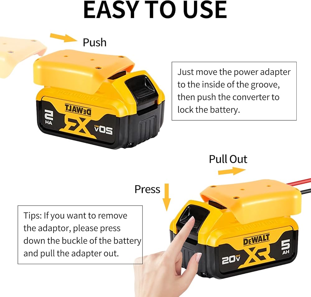 • COMPATIBLE: The power wheels adapter is fit for Dewalt 18V/20V DCB200 DCB201 DCB203 DCB204 DCB205 DCB206 lithium-ion Battery etc.