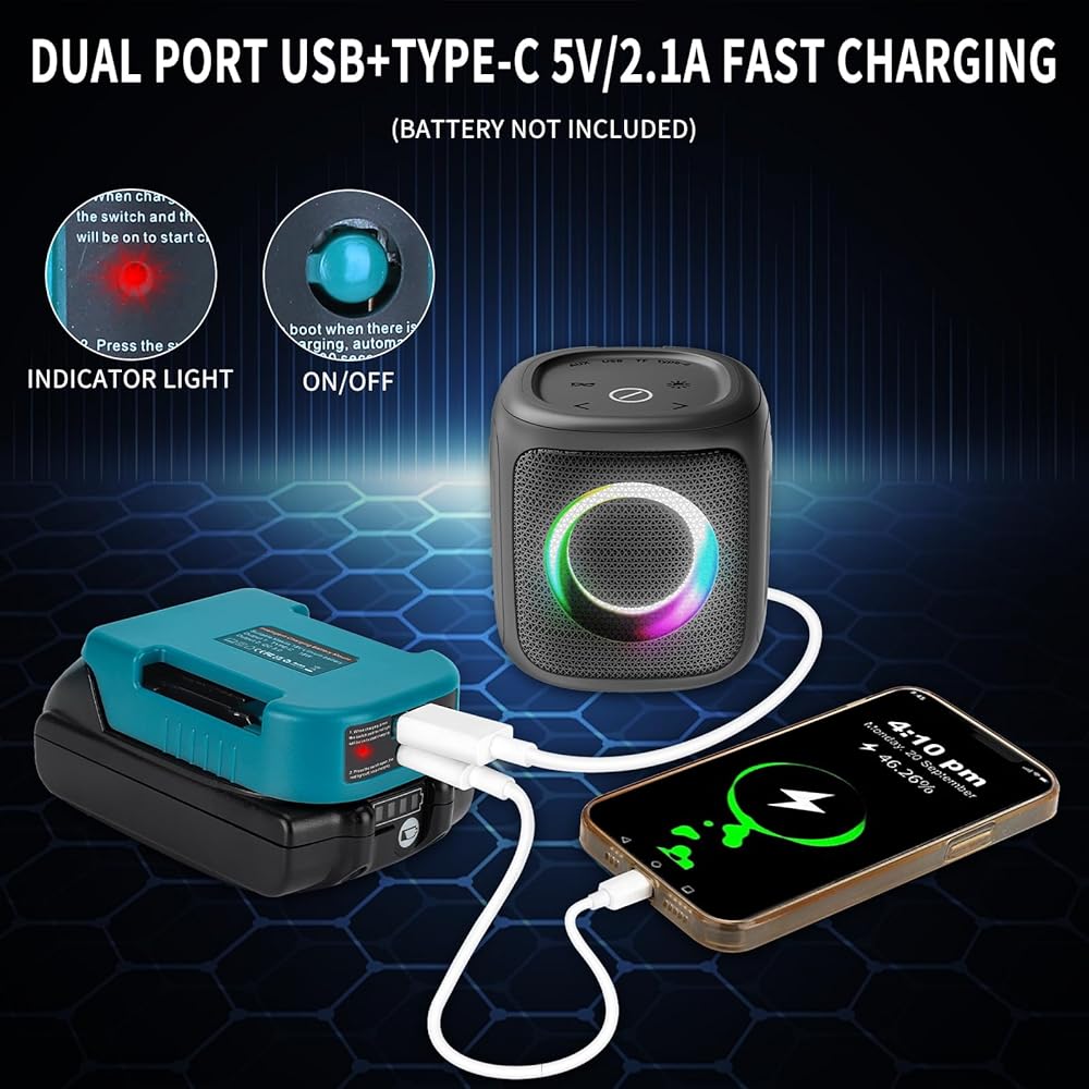 ⚡آمن ومريح: حامل البطارية الخاص بنا مجهز بمنافذ إخراج USB وType-c 5V/2.1A لشحن هاتفك والأجهزة الإلكترونية الأخرى بضغطة زر. سيتم إيقاف تشغيل الشريحة الذكية المدمجة تلقائيًا بعد 30 ثانية عند عدم اكتشاف أي حمل لحماية البطارية.