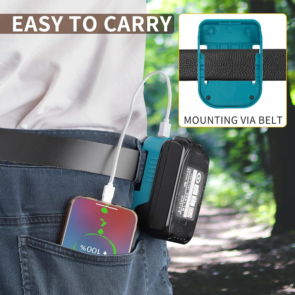 ⚡سهولة الحمل: يمكن لف حامل البطارية الخاص بنا حول حزامك وحمله معك، مما يوفر طاقة كافية لأدوات الطاقة الخاصة بك في جميع الأوقات. ويمكنه أيضًا شحن هاتفك الخلوي والأجهزة الإلكترونية الأخرى.