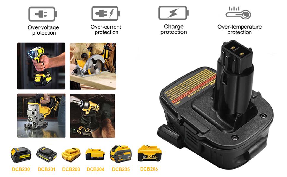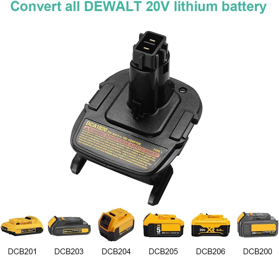 يسمح محول بطارية ديوالت البديل الممتاز 20 فولت باستخدام بطاريات ليثيوم 20 فولت ماكس اكس ار في أي أداة ديوالت 18 فولت، ومتوافق مع بطاريات ديوالت DCB200 DCB201 DCB203 DCB203BT DCB204 DCB205 DCB206.