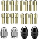 توافق واسع: مجموعة تشاك بدون مفتاح سريعة التغيير هذه متوافقة مع أدوات دريميل الدوارة اللاسلكية والحبلية، وتستوعب الملحقات بأحجام ساق تتراوح من 1/32 بوصة إلى 1/8 بوصة.