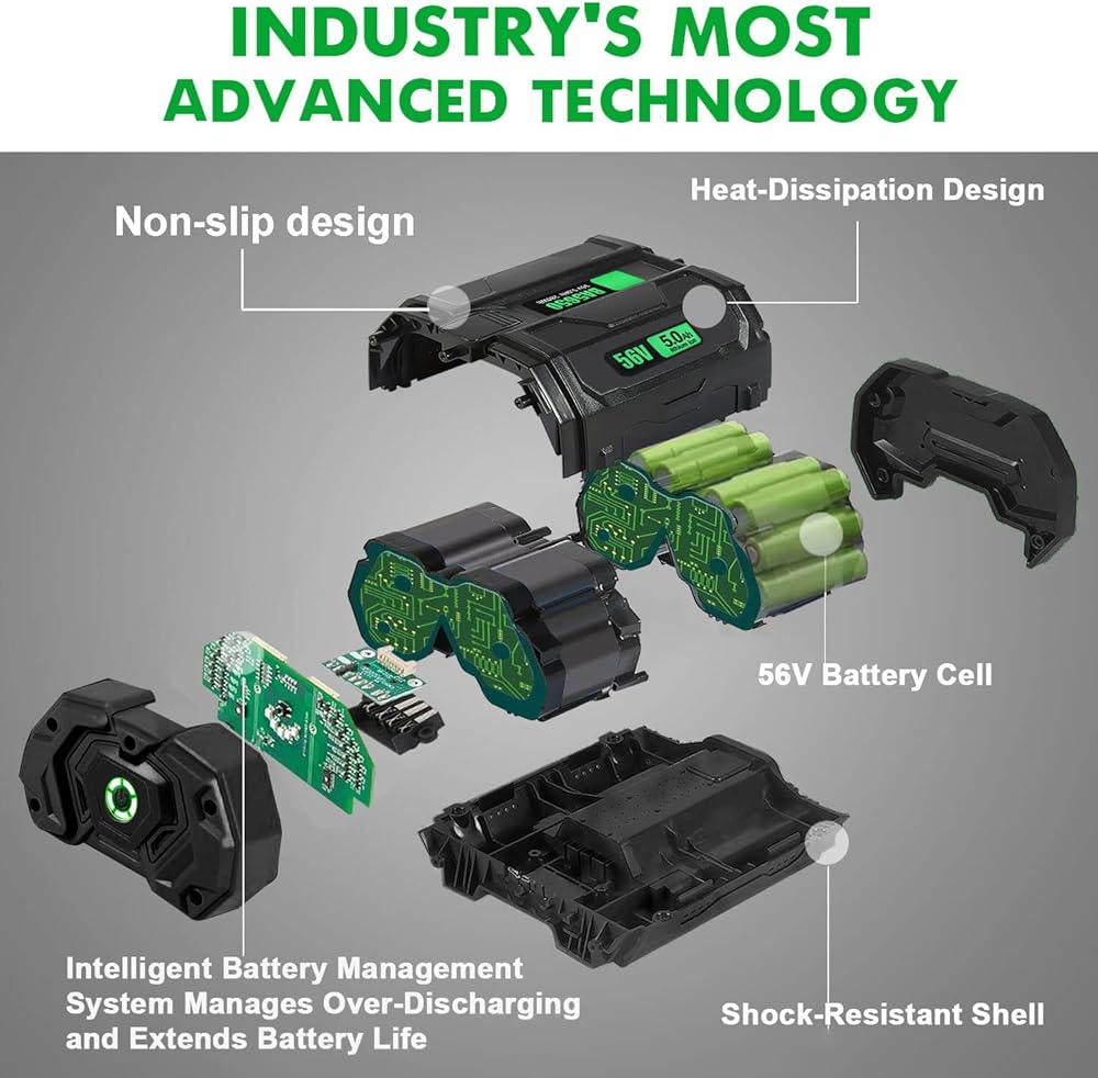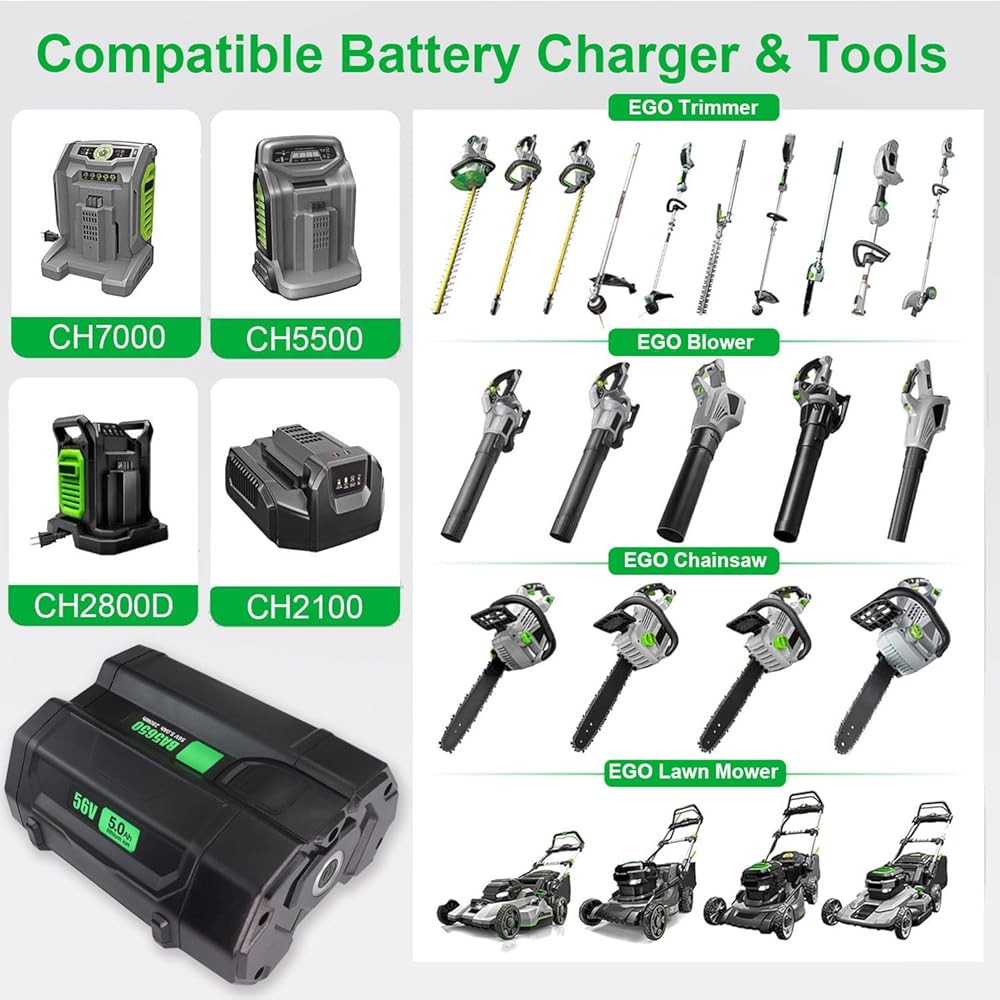 【وقت تشغيل أطول 6X】 بطارية ليثيوم أيون Ftenlyen 56V 5000mAh، السعة الفعلية وخلايا ليثيوم أيون من الدرجة الأولى، توفر طاقة تصل إلى 280 وات، وقت تشغيل أطول 6X وطاقة أقوى من البطارية الأصلية! بديل اقتصادي لبطارية EGO Power+ BA2800 BA2800T 56 فولت 5.0 أمبير.