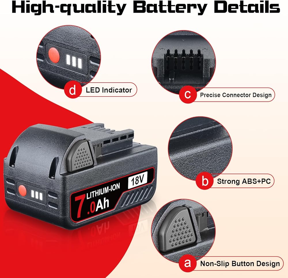 • 【مواصفات البطارية 】الجهد: 18 فولت | السعة: 6000 مللي أمبير | النوع: ليثيوم أيون | العبوة: قطعتان | قابلة للشحن | خلايا بطارية عالية الجودة | فعالة وخالية من التلوث