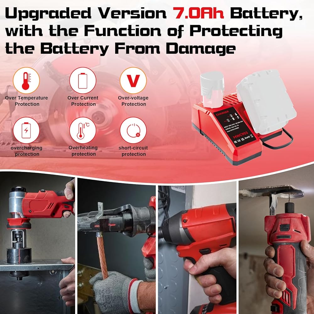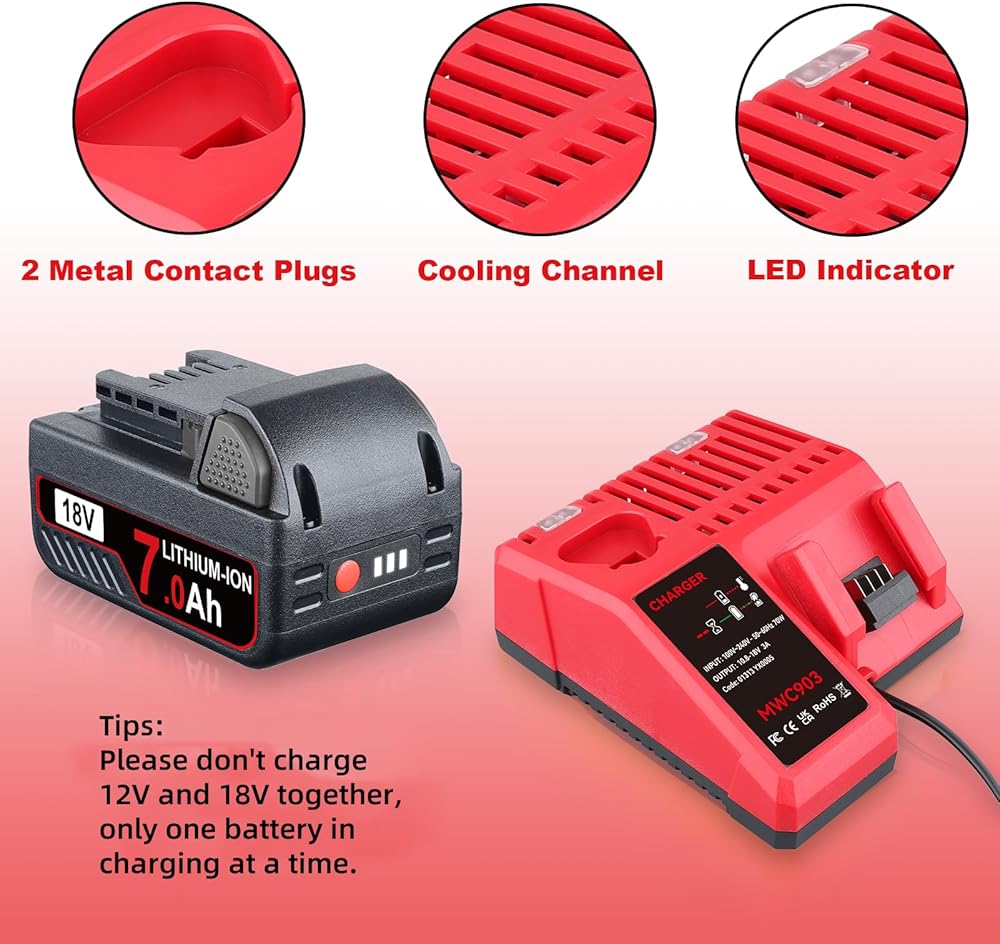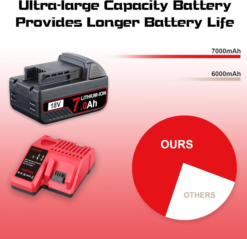 هذا 7.0ah 2pack 18v استبدال البطارية لبطارية Milwaukee 18V الليثيوم والشاحن مجموعة 48-11-1840 48-11-1815 48-11-1820 48-11-1850 ، متوافقة