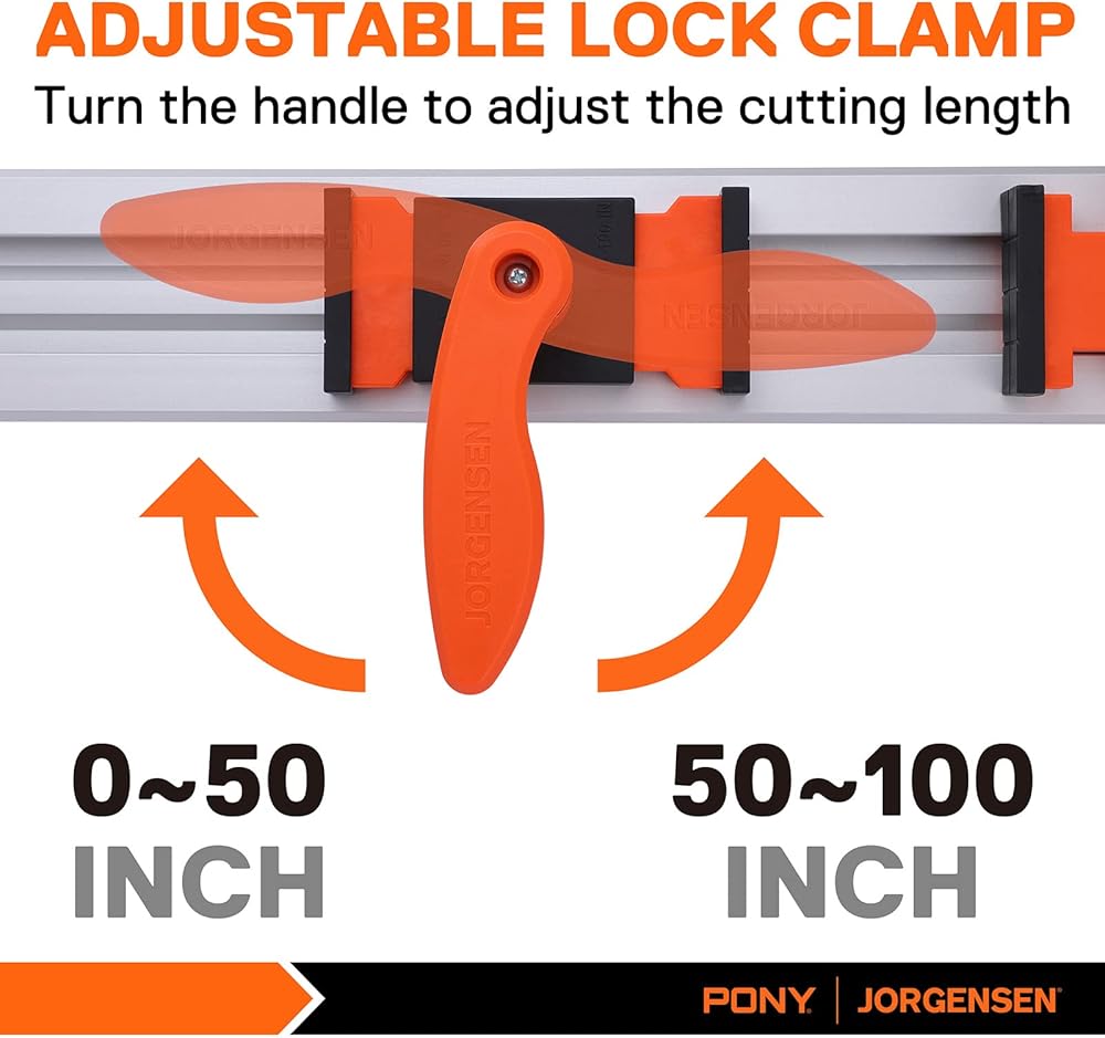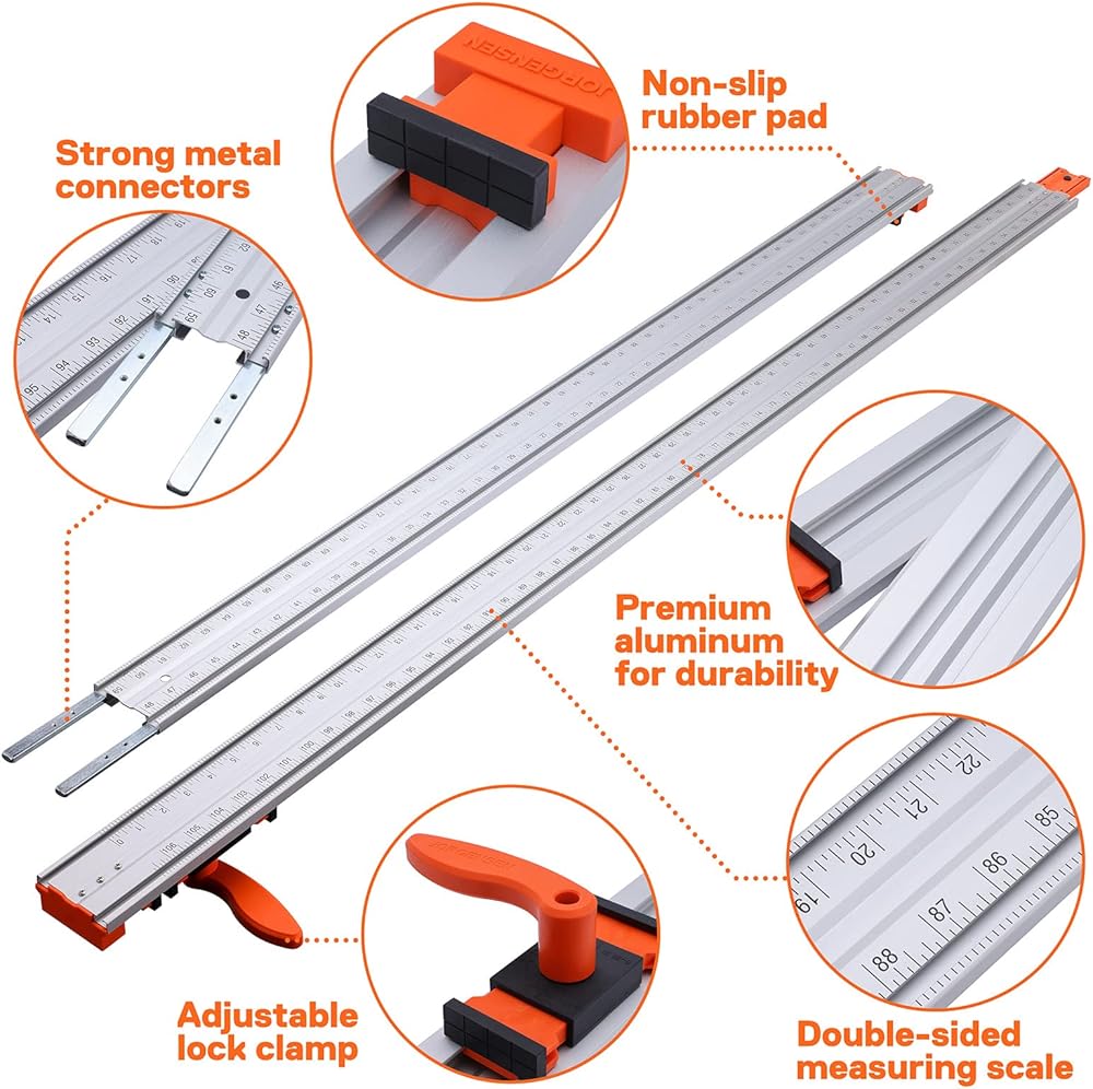 الحزمة 1: طول القطع 100 بوصة: سوف تحصل على دليل قطع 50 بوصة وسكة تمديد 50 بوصة، قم بتوصيل القطع معًا للحصول على 100 بوصة من القطع المستقيمة، مع دليل القطع JORGENSEN، ستتخلص من النفايات بسبب القطع الملتوية وغير المستوية