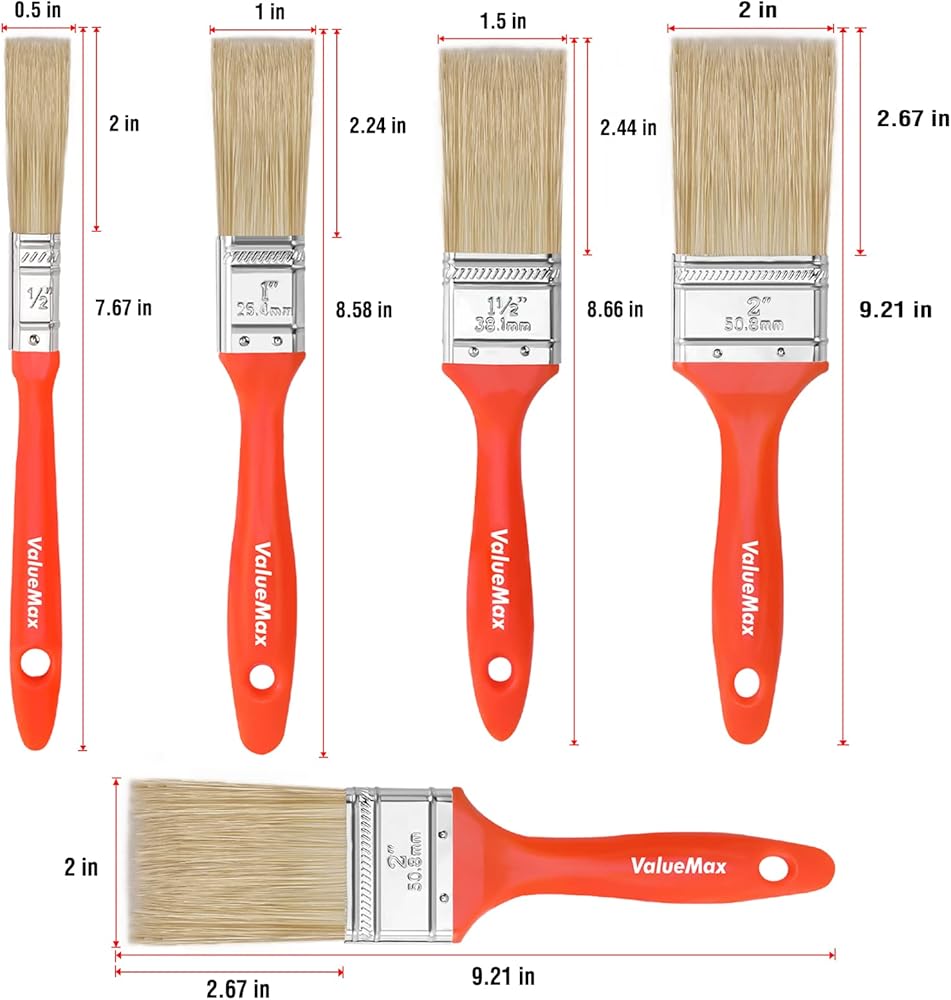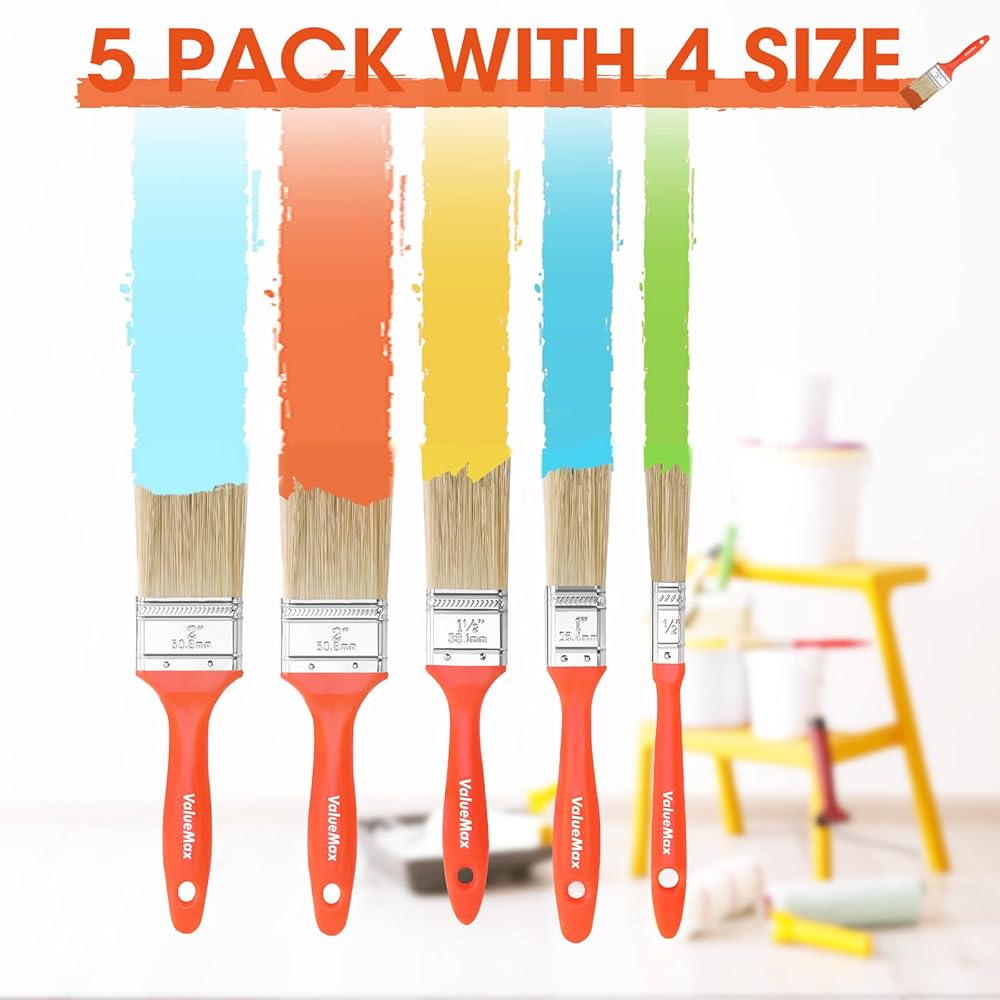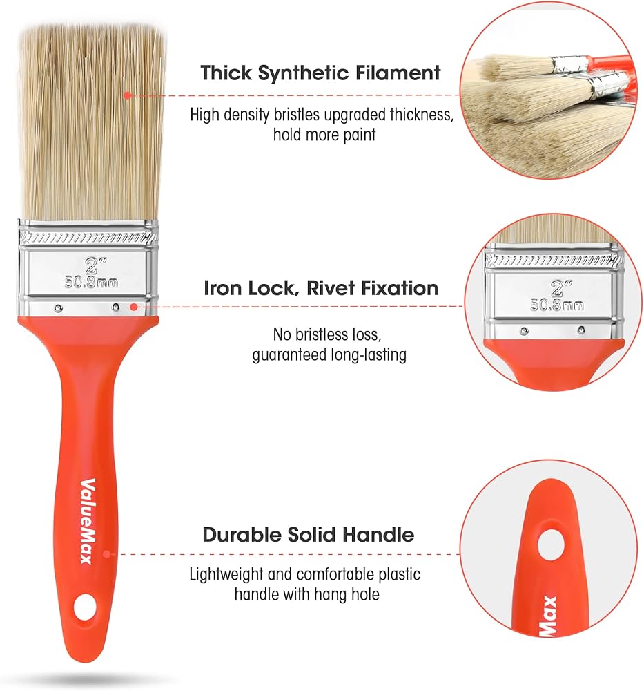 العبوة 2: ما ستحصل عليه: تتضمن مجموعة فرش الطلاء 5 فرش طلاء فاخرة: فرش مسطحة مقاس 2 × 2 بوصة، فرشاة مسطحة مقاس 1.5 بوصة، فرشاة مسطحة مقاس 1 بوصة، فرشاة مسطحة مقاس 0.5 بوصة، فرش طلاء صغيرة مناسبة للمساحات الضيقة والمناطق التفصيلية، مجموعة واحدة يمكن أن تلبي جميع احتياجاتك.