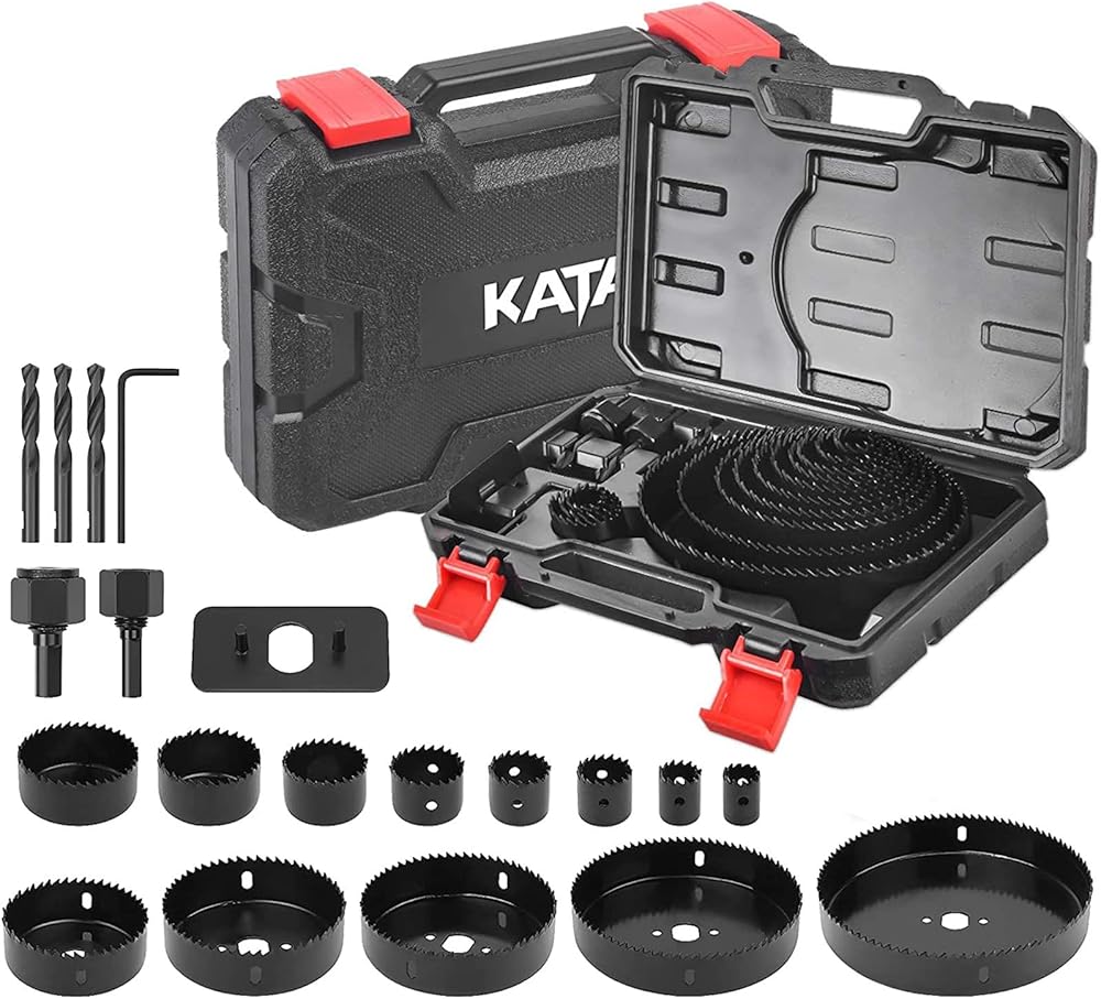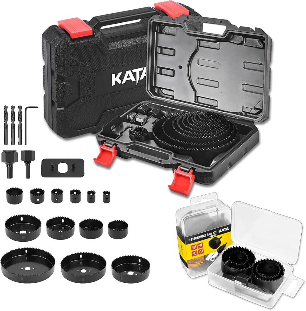 طقم منشار ثقب 20 قطعة من كاتا ومجموعة منشار ثقب 6 قطع مع مماسك، لقم ثقب، لوحة تركيب، مفتاح سداسي