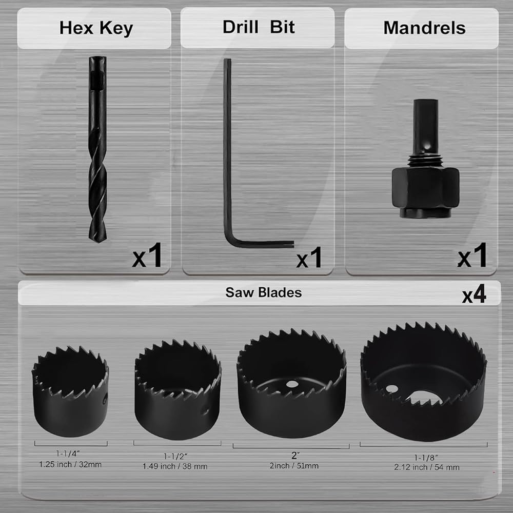 • 【تتضمن العبوة 6 قطع】تتضمن الأحجام الأكثر شيوعًا لطلب المنزل والعمل، 4 قطع مناشير ثقب 1-1/4 بوصة (32 مم)، 1-1/2 بوصة (38 مم)، 2 بوصة (51 مم)، 2-1/8 بوصة (54 مم)، 1 قطعة منشار ثقب 1/4 بوصة ومفتاح سداسي قطعة واحدة.