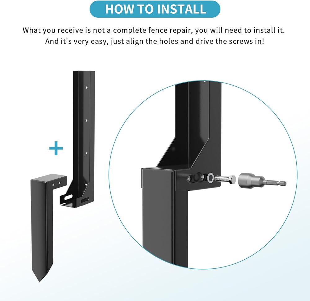 • جودة عالية: مجموعة إصلاح السياج مصنوعة من فولاذ قوي متين وعالي الجودة. إنه متين ولن يتشوه بسهولة. يقوم إصلاح ما بعد السياج الفولاذي الثقيل بإجراء إصلاحات صلبة على عمود السياج المتذبذب أو المكسور.