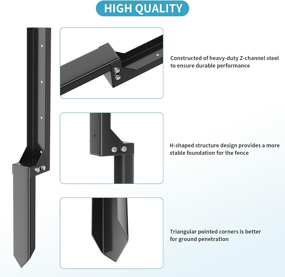 • Z-SHAPE: يمكن لإصلاح السياج تجاوز الهيكل الصلب للأساس الخرساني حول الوتد. وفي الوقت نفسه، فهو أكثر امتصاصًا وأقوى في الأرض. من السهل إدخال تصميم الزاوية السفلية المدببة في الأرض.