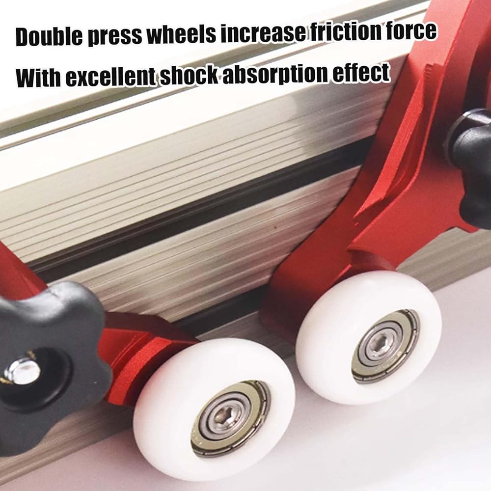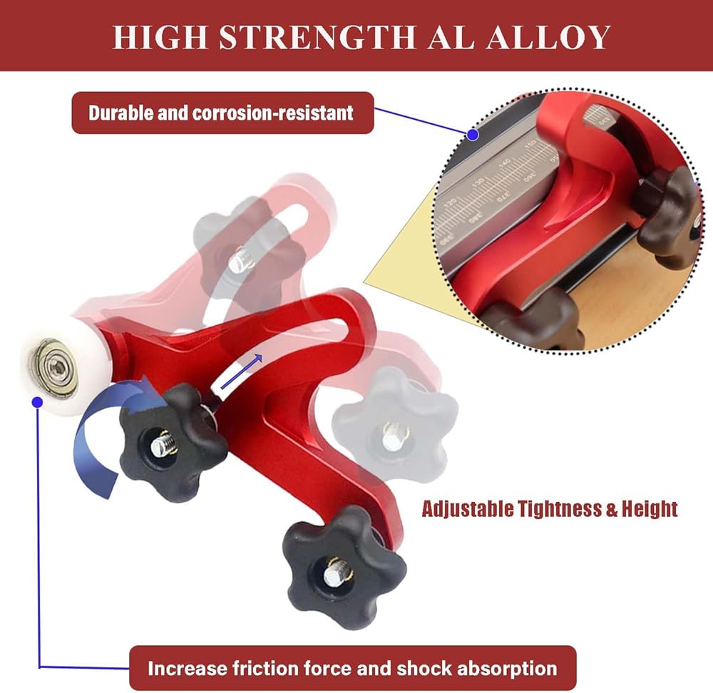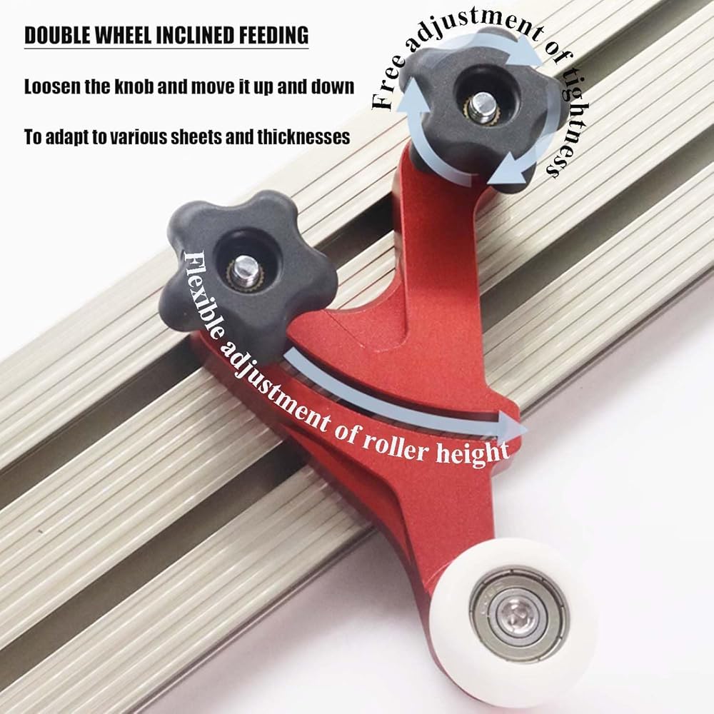 【Adjustable Tightness】Roller height can be flexibly adjusted via a clamping knob to adapt different stock thicknesses. It is NOT recommended to use it on boards less than 1 inch thick. Otherwise, the wood will get stuck in the wheel.