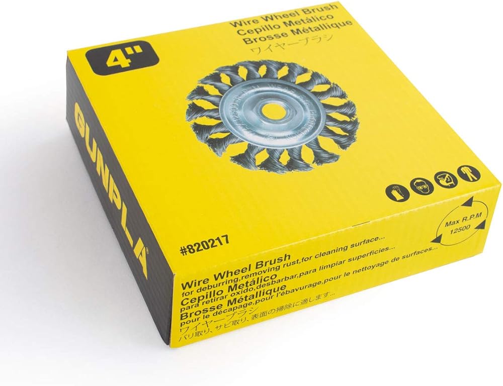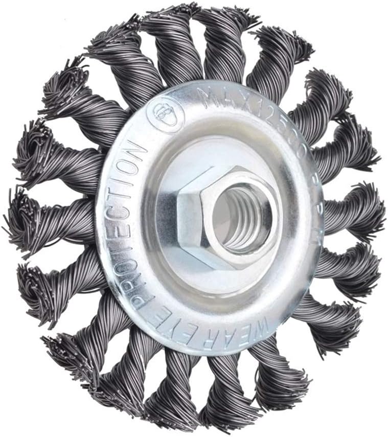 يبلغ حجم هذه الفرشاة السلكية المعقودة 4 بوصة بالحجم الكامل مع 4 بوصة × 5/8 بوصة - 11 خيط قياسي UNC - مطحنة زاوية سلكية بسمك 0.020 بوصة مع شجرة 5/8 بوصة. تتميز الفرشاة السلكية الملتوية بحد أقصى 12500 دورة في الدقيقة.
