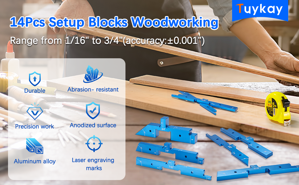 مكعبات اعداد لاعمال النجارة من تويكاي، 14 قطعة من مكعبات اعداد طاولة الراوتر، قضبان اعداد طاولة راوتر دقيقة من الالومنيوم لمنشار طاولة الراوتر واعداد قياس الزاوية، مكعبات اعداد لاعمال النجارة