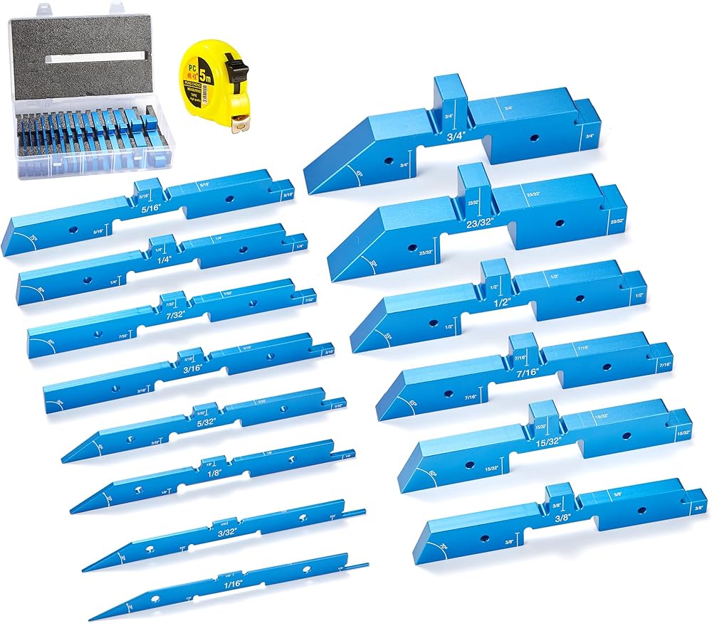 المقاس: 1/16 بوصة، 3/32 بوصة، 1/8 بوصة، 5/32 بوصة، 3/16 بوصة، 7/32 بوصة، 1/4 بوصة، 5/16 بوصة، 3/8 بوصة، 7/16 بوصة، 15/32 بوصة، 1/2 بوصة. 11 سم، 23/32 انش، 3/4 انش (كل مكعب له سمك مختلف)