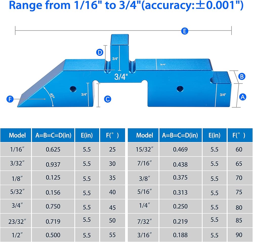• 【قياس دقيق】مقاسات مكعبات الإعداد: 1/8 انش، 3/16 انش، 1/4 انش، 5/16 انش، 3/8 انش، 7/16 انش، 1/2 انش. سواء كنت تقوم بقياس شفرات الطاولة أو الراوتر، ستحصل على قياسات عالية الدقة. شريط إعداد طاولة الراوتر الكهروضوئية دقيق إلى ±0.1 انش.