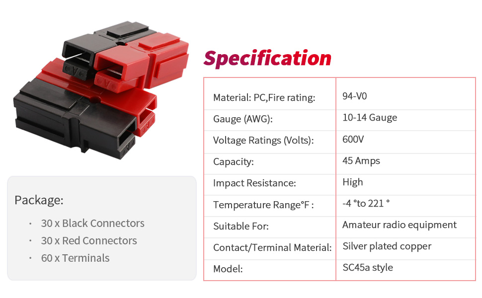 ✅استخدام واسع - يوفر موصل البطارية السريع الخاص بنا طريقة بسيطة ومريحة لتوصيل/فصل الطاقة عن أجهزة راديو الهواة أو المقطورة أو الأجهزة الكهربائية الأخرى