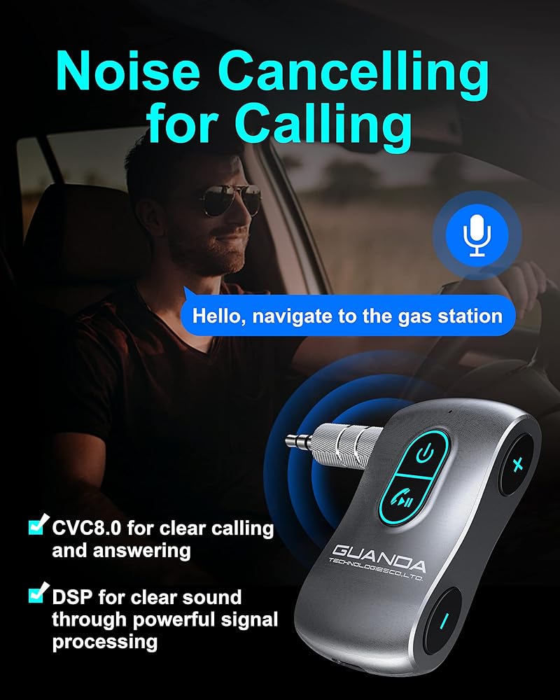 INTELLIGENT NOISE REDUCTION: This car bluetooth adapter adopts the latest CVC8.0 Noise Cancellation and Digital Signal Processor (DSP) technologies, which eliminate echo and block out background noise, such as wind, traffic, or crowds, providing you with clear calling sounds.