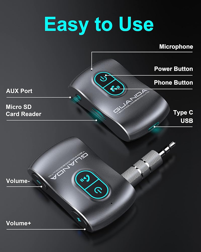 HANDS-FREE CALLING & NAVIGATION: The built-in microphone picks up sounds, and the MFB button answers/redials/hang-ups/rejects calls to free your hands. Also, the Bluetooth aux adapter for car supports broadcasting voice notification from navigation Apps. You don't have to look down the phone on the move. Make sure you drive safely.