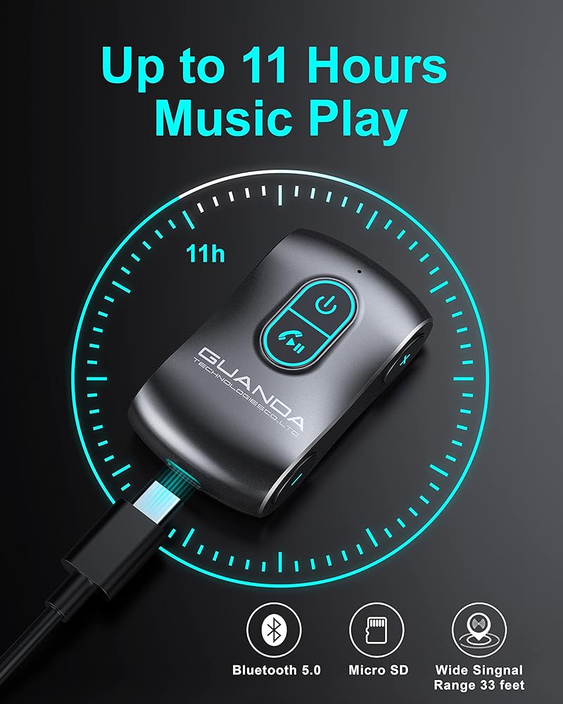 ENJOY WIRELESS MUSIC: This Bluetooth receiver can connect to non-Bluetooth car audio system, home stereo, speakers, and wired headphones via the 3.5mm AUX adapter. Equipped with an advanced Bluetooth 5.0 chip, it has stable connection, fast transmission, and wide signal range. Pair your phone or insert a Micro SD card and start your musical journey.