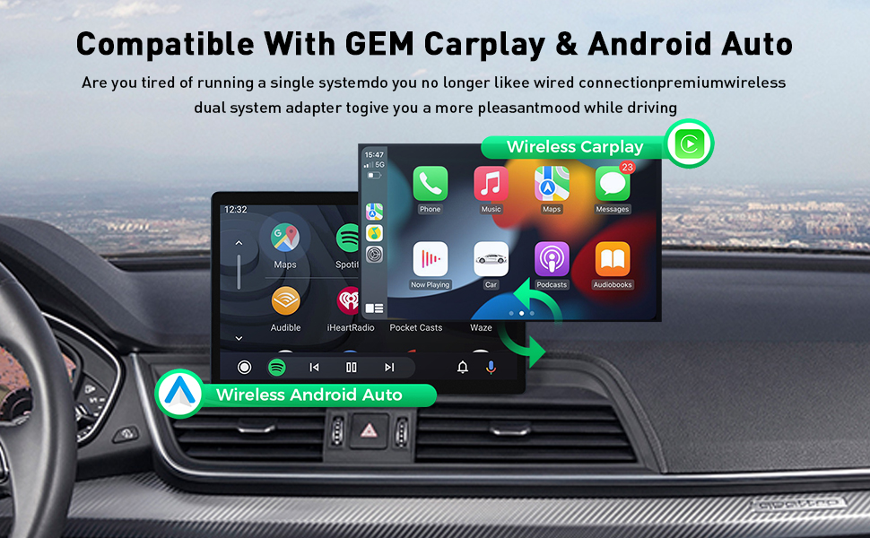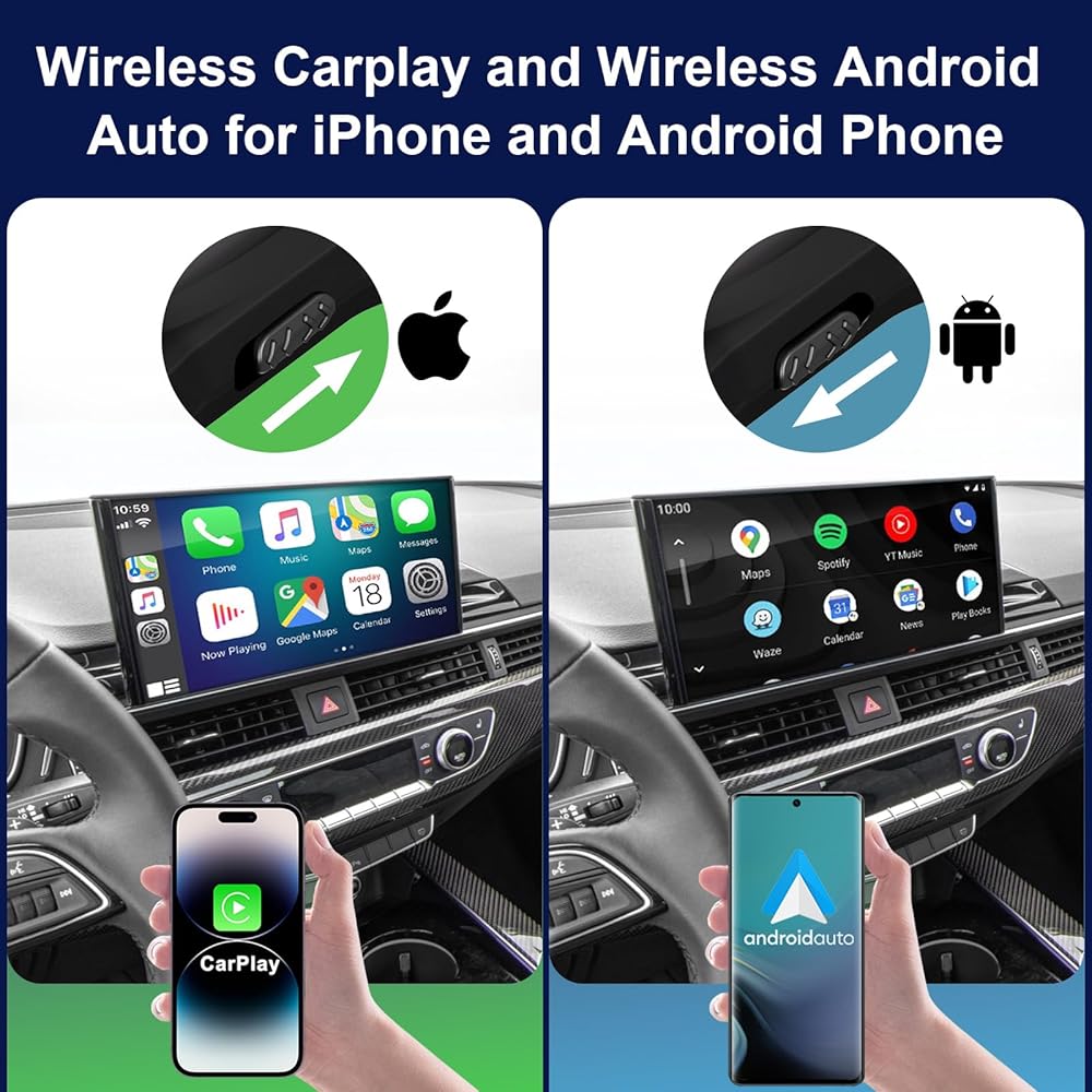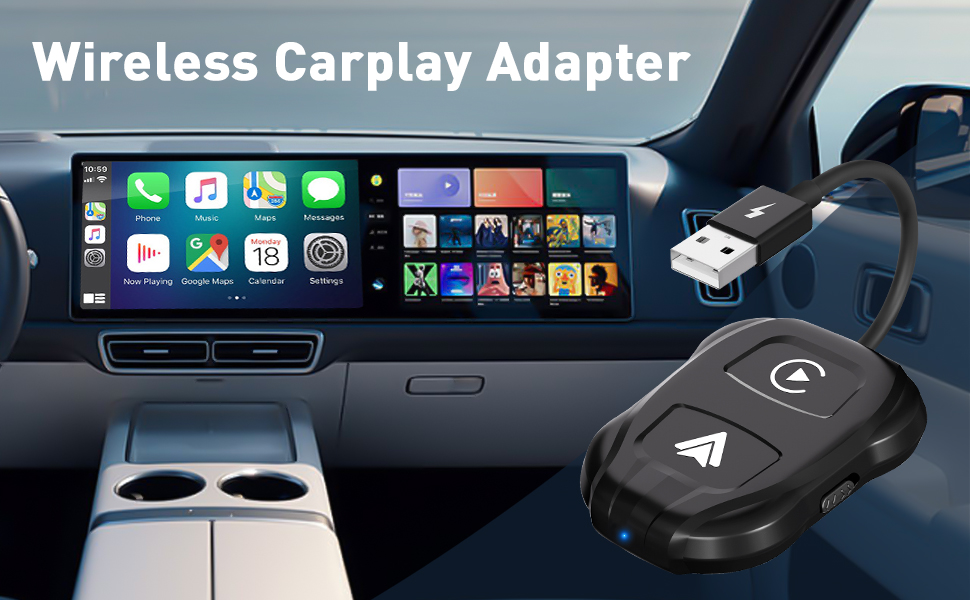 ⚡【محول CarPlay اللاسلكي وAndroid Auto】-- لا مزيد من الأسلاك! بفضل محولات CarPlay اللاسلكية، يمكنك تحويل أي سيارة مزودة بميزة CarPlay السلكية إلى سيارة لاسلكية. يمكنك استخدام وظائف CarPlay الكاملة في واجهة بديهية من خلال دونجل CarPlay اللاسلكي الخاص بنا، مثل الملاحة وWaze وخرائط Google والبودكاست والموسيقى والمكالمات الهاتفية والمراسلة وSiri، وما إلى ذلك. يرجى ملاحظة!!!: (يجب أن تكون سيارتك لديك وظيفة CarPlay السلكية من المصنع)