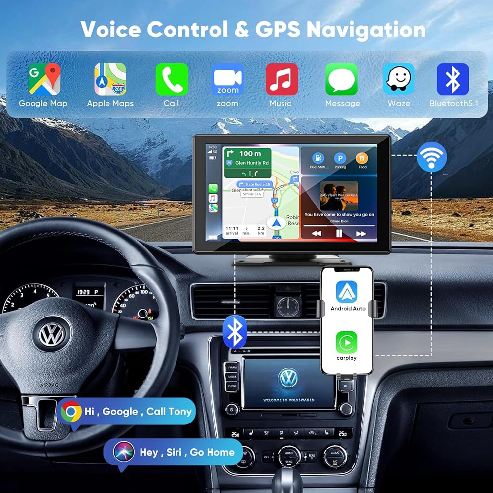 Hererod ستيريو سيارة Carplay لاسلكي محمول مع كاميرا داش 2.5K - شاشة IPS عالية الدقة 9.8 بوصة، Android Auto، كاميرا احتياطية 1080 بكسل، تسجيل حلقة، بلوتوث، وحدة رأس ملاحة GPS، مستقبل راديو السيارة