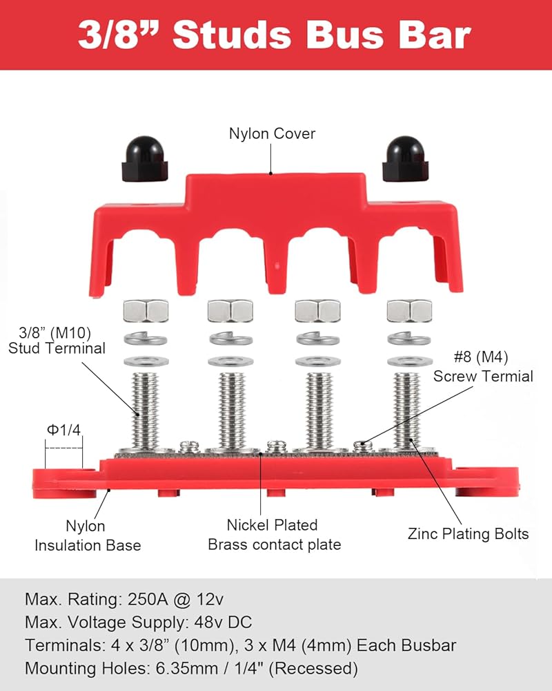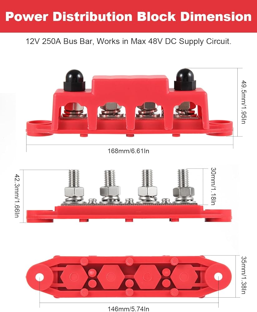 Gioyonil Heavy Duty 12v Busbar مناسب للأجهزة حتى 48 فولت. يأتي مع مفتاح البطارية معًا، مما يساعد مشروعك بشكل أسهل وأكثر ملاءمة.