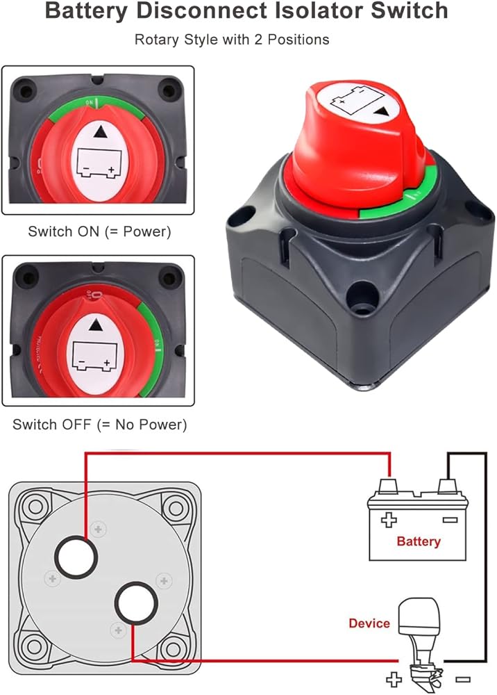 يُستخدم هذا المفتاح الرئيسي للبطارية وقضيب التوصيل على نطاق واسع في السيارات والبحرية والقوارب وRV والتخييم ومقطورة السفر والشاحنات وATV وUTV وبنوك البطاريات وغيرها من الأجهزة 0-48 فولت؛ ضمان لمدة 12 شهرًا لاسترداد الأموال أو استبدال أي منتج معيب