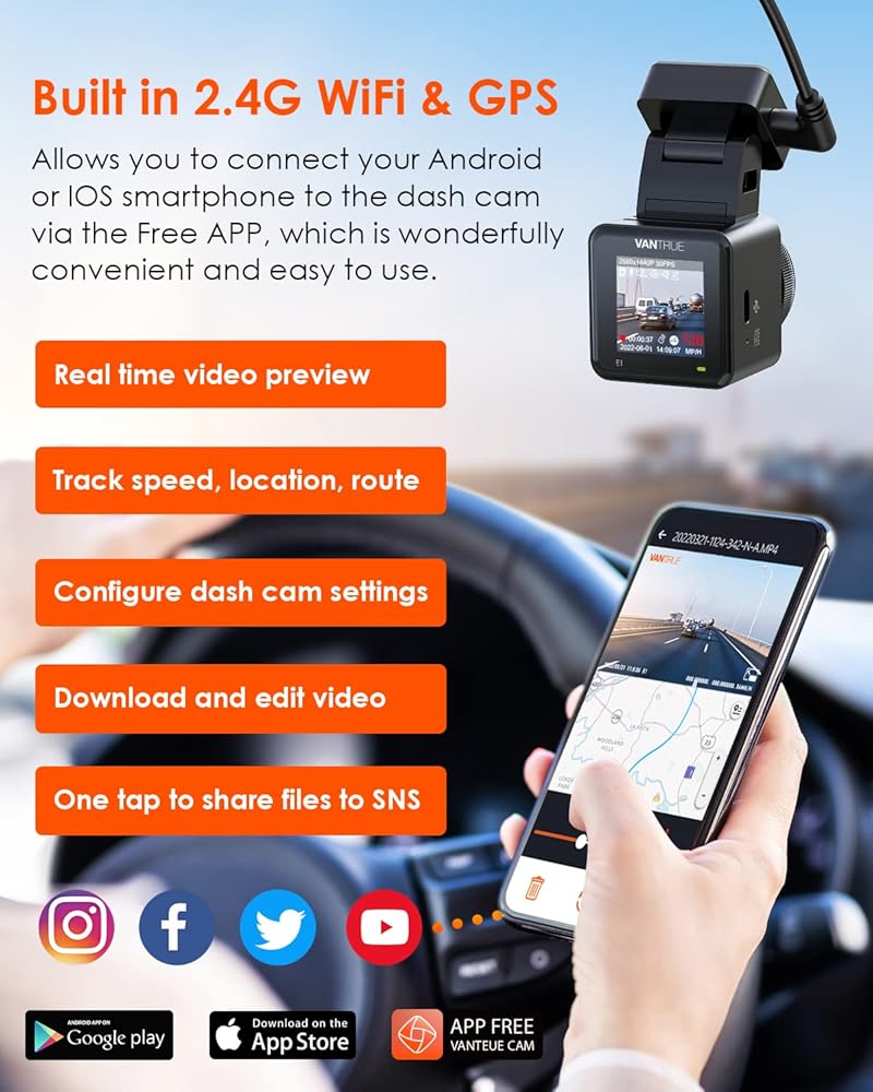 【الحزمة: كاميرا Vantrue E1 Mini Dash Camera + CPL】Vantrue E1 2.7K WiFi GPS Mini Dash Cam 1944P التحكم الصوتي 1.54 بوصة LCD كاميرا لوحة القيادة الأمامية للسيارة مع التطبيق، رؤية ليلية، وضع انتظار الحركة المخزنة لمدة 24 ساعة