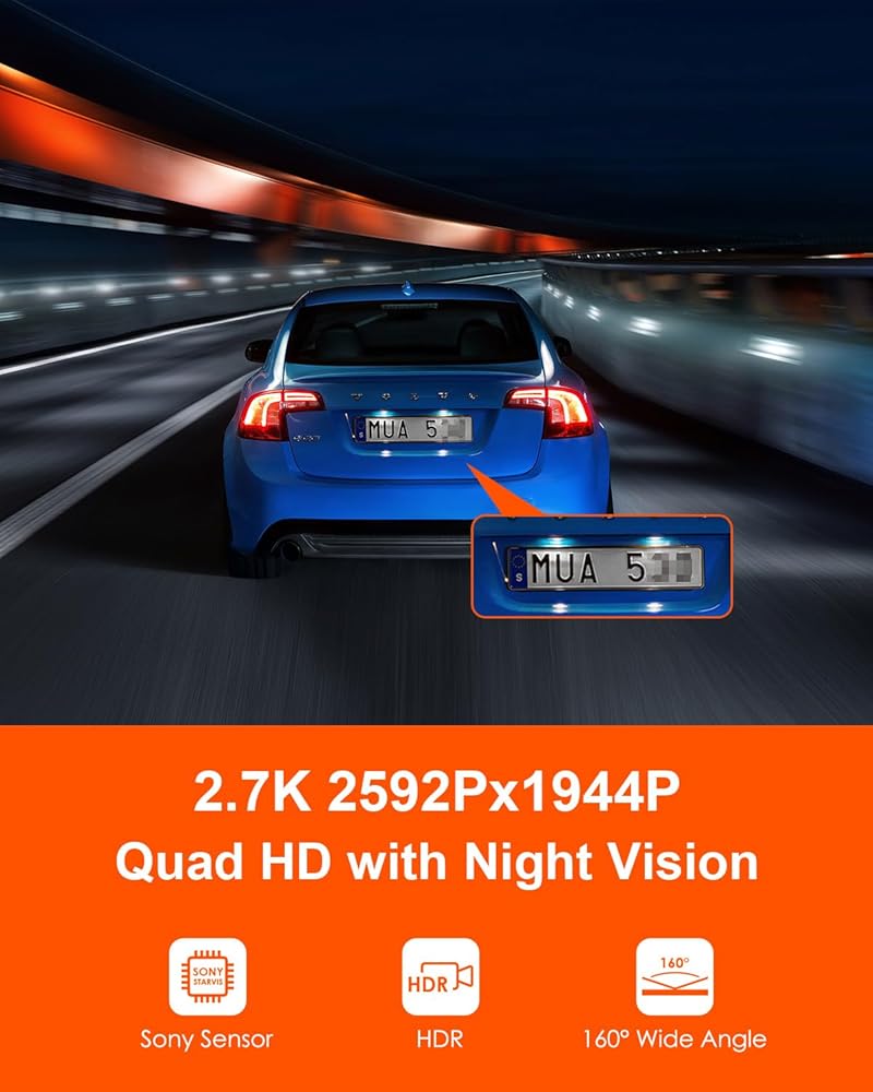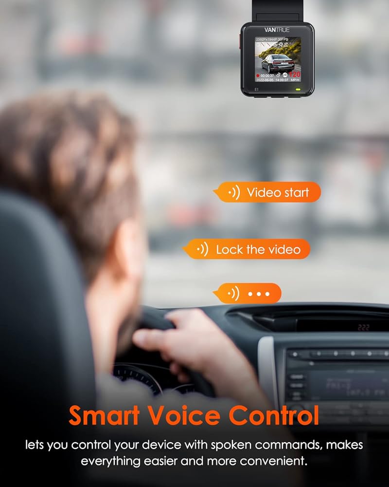 كاميرا داش 2.7K مع رؤية ليلية: تم تجهيز كاميرا داش Vantrue E1 الصغيرة بمستشعر CMOS عالي الجودة قادر على التقاط لقطات واضحة 2.7K 2592*1944P وتعزيزها في الظروف الجوية الصعبة. إنها تستخدم تقنية HDR (المدى الديناميكي العالي) وفتحة واسعة F1.8، والتي يمكنها زيادة التعرض تلقائيًا في المواقف المظلمة وتضمن رؤية ليلية فائقة، وقادرة على قراءة لوحات الأرقام أو العثور على أشياء بسيطة يمكن أن تكون بمثابة دليل مهم.
