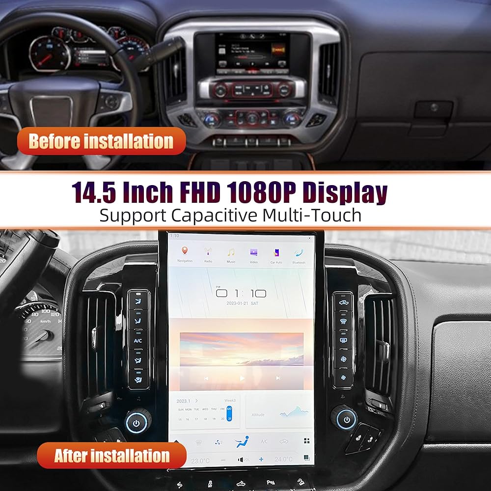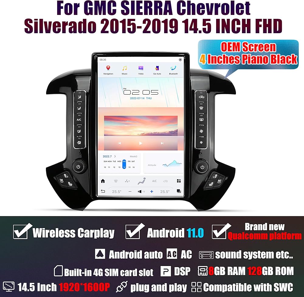 توافق واسع: 14.4 بوصة نمط عمودي 1920*1080 دقة IPS سعوية متعددة اللمس وحدة رأس راديو السيارة لـ GMC SIERRA شيفروليه سيلفرادو 2015-2019 (متوافق مع شاشة المصنع الأصلي 8 بوصة OEM؛ شاشة OEM 4 بوصة يرجى اختيار واحدة أخرى؛ غير متوافق مع شاشة OEM مقاس 7 بوصة).