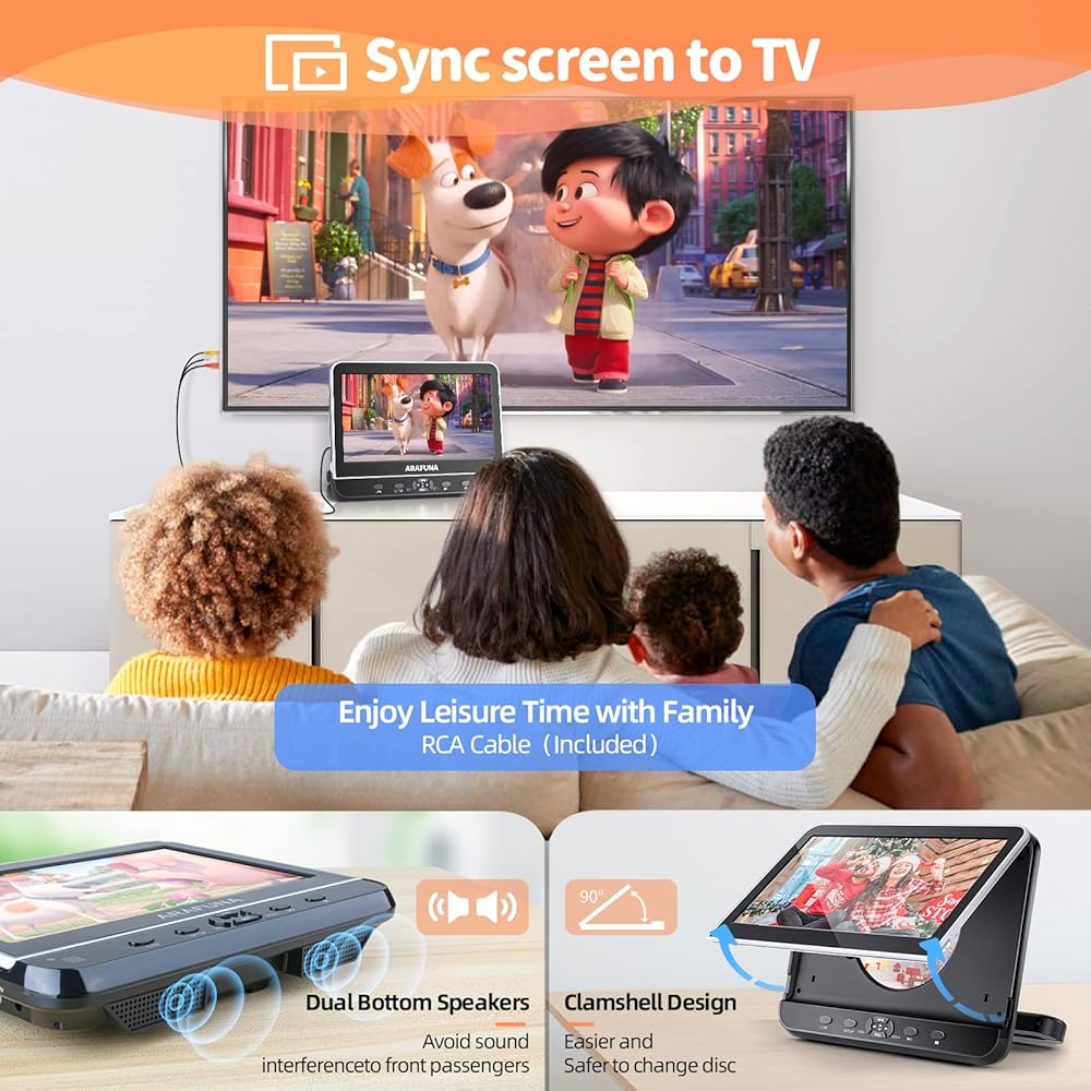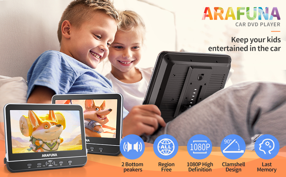 📀【تصميم صدفي وسهل التركيب】مشغل دي في دي للسيارة ارافونا للأطفال مجهز خصيصًا بتصميم صدفي، مما يجعل من السهل على الأطفال تغيير القرص دون إزالة مشغل دي في دي بمسند الرأس في السيارة. يوفر مكبرا صوت ستيريو قويان صوت ستيريو أكثر وضوحًا. بالإضافة إلى ذلك، يمكن تركيب تلفزيون السيارة الخاص بنا للأطفال بسهولة في المقعد الخلفي لسيارتك وإزالته بسرعة إلى المقعد أو السيارة الأخرى. يمكن تعديل زاوية الشاشة للحصول على زاوية رؤية أفضل.