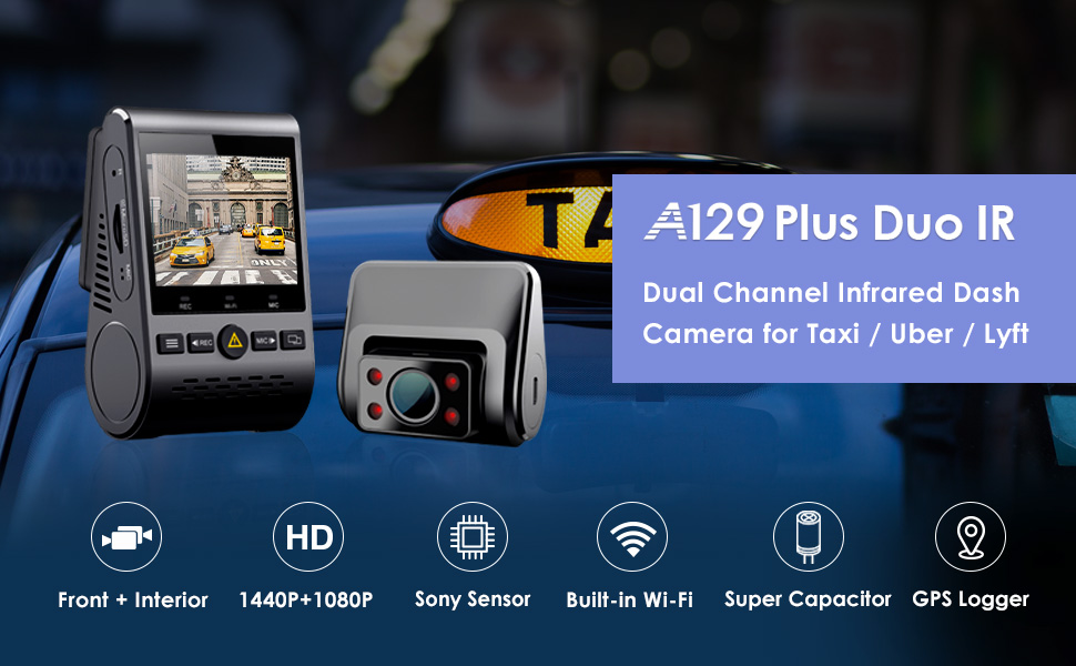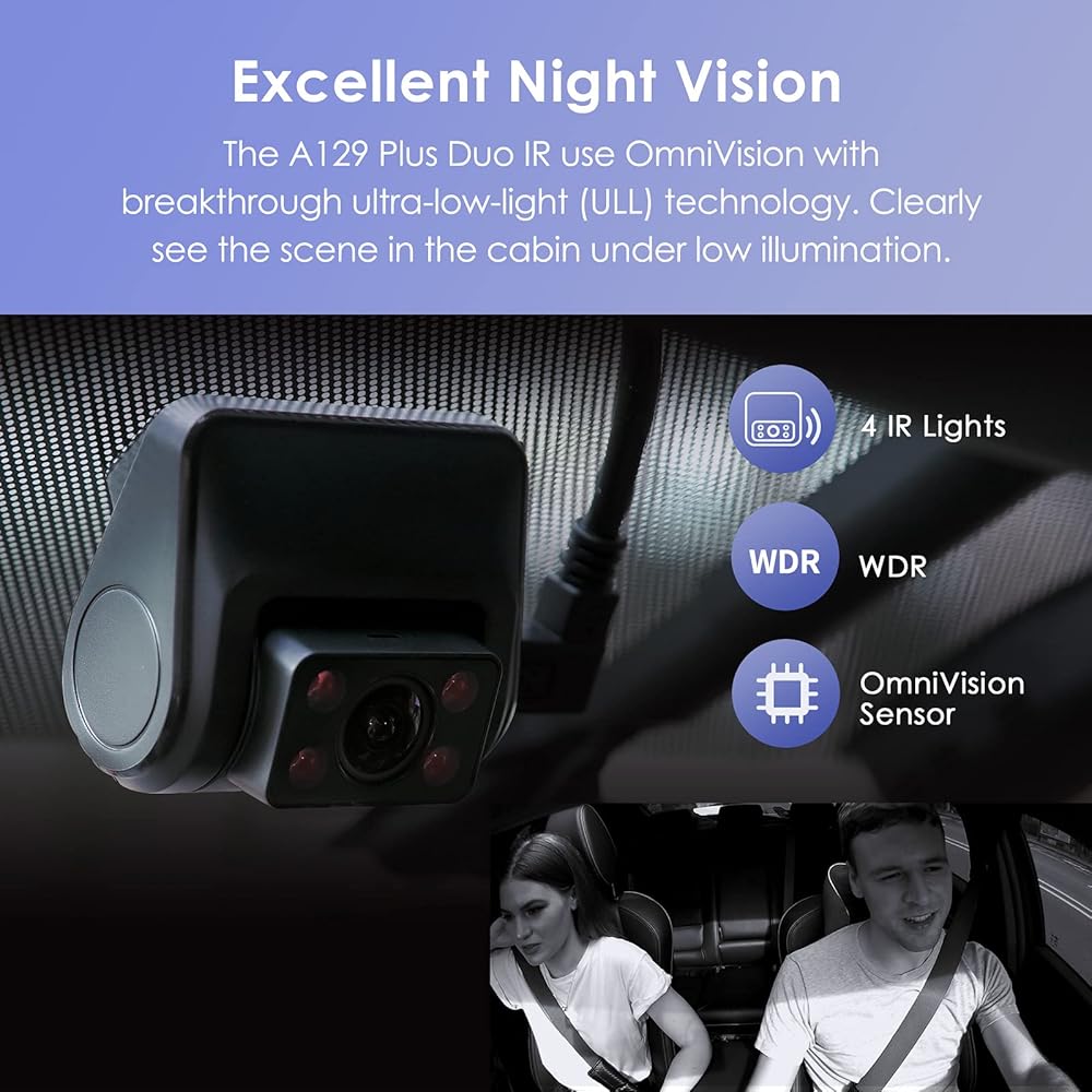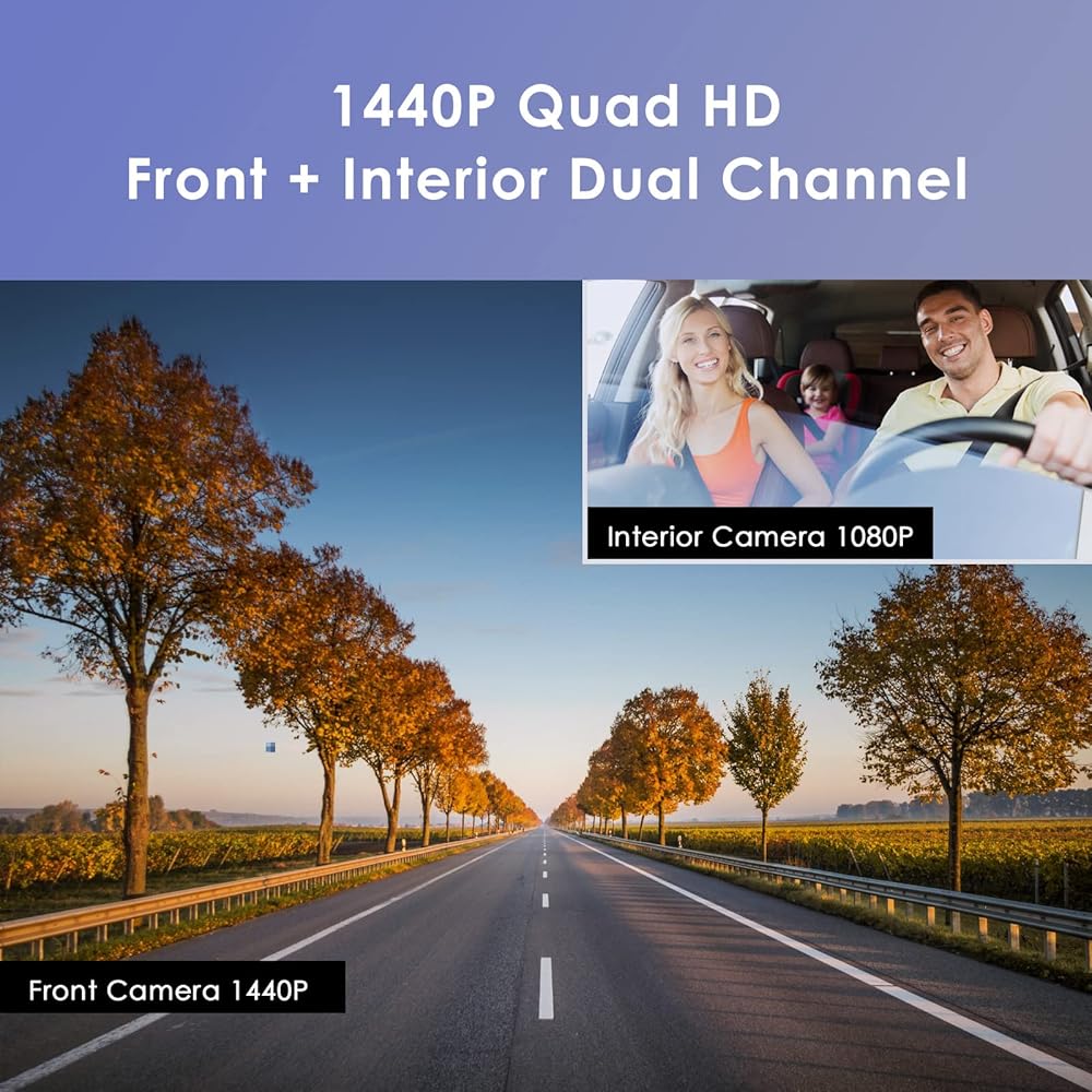 فايوفو كاميرا تابلوه مزدوجة 2K، كاميرا امامية 1440P و1080P داخل المقصورة للسيارة مع واي فاي ونظام تحديد المواقع ورؤية ليلية بالاشعة تحت الحمراء، وضع وقوف السيارات، مكثف فائق، تدعم 256GB كحد اقصى (A129