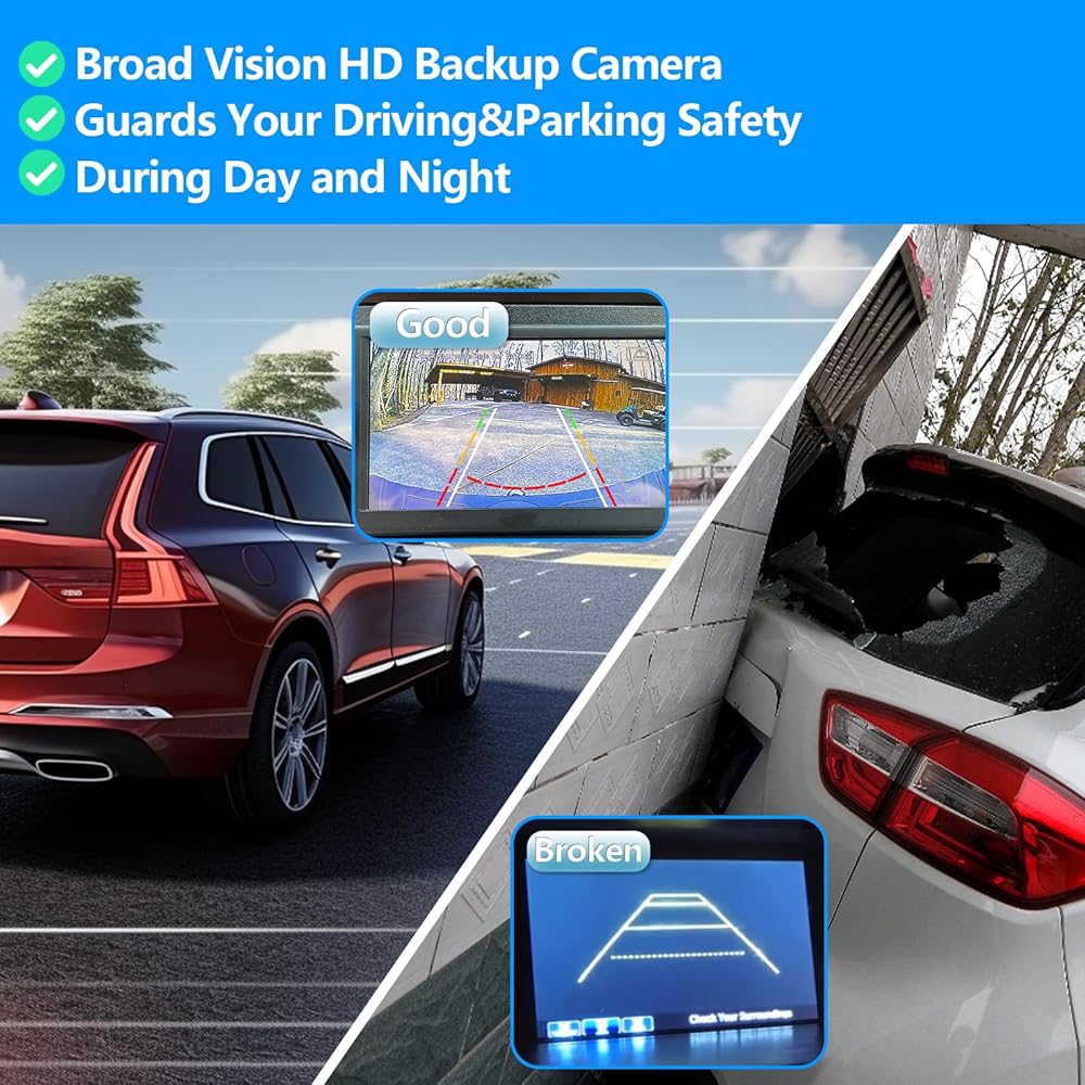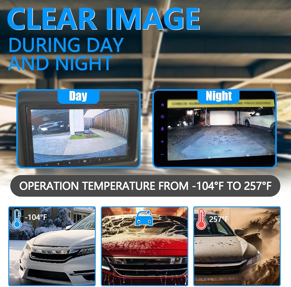 【ضمان قيادة أكثر أمانًا】مع رؤية زاوية واسعة 170 درجة، ورؤية ليلية عالية الدقة، وخط التتبع العكسي، تساعد الكاميرا المساعدة على ركن السيارة على تقليل البقع العمياء، وتجنب الاحتكاك والصدمات، وزيادة السلامة أثناء القيادة ومواقف السيارات.