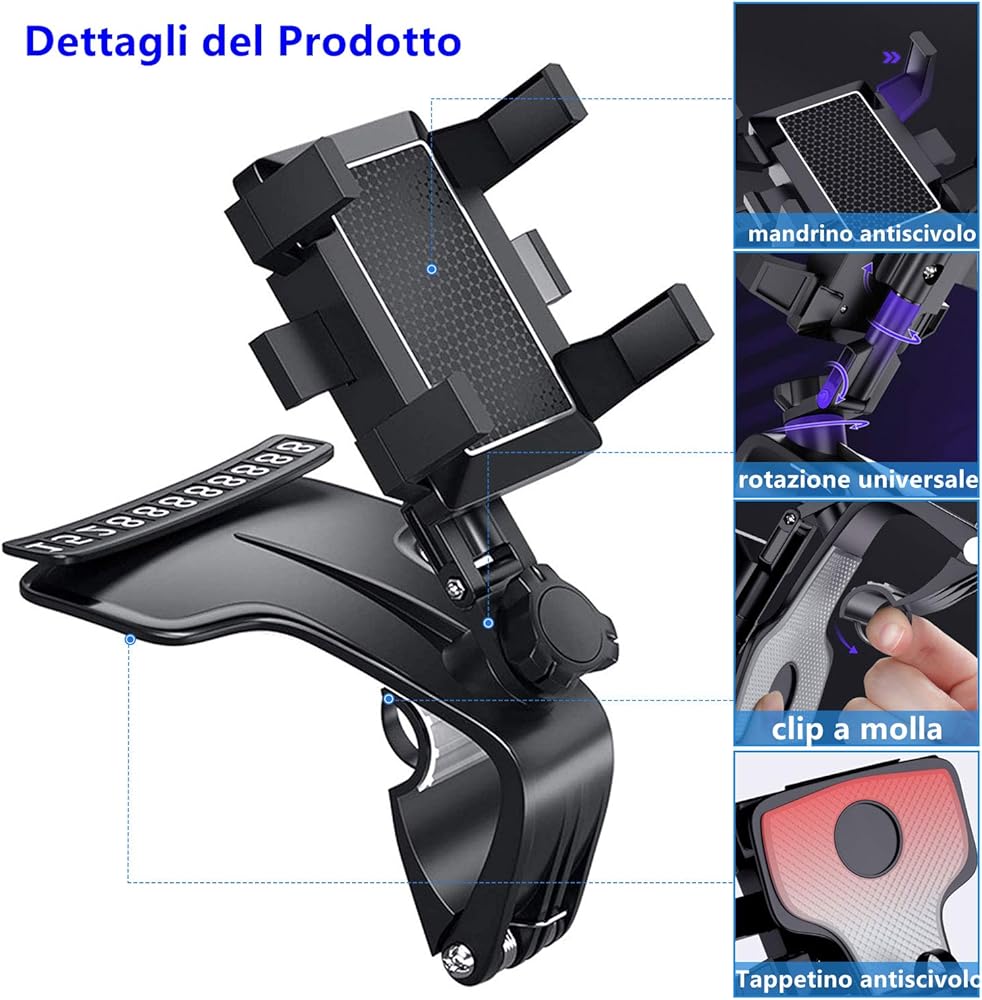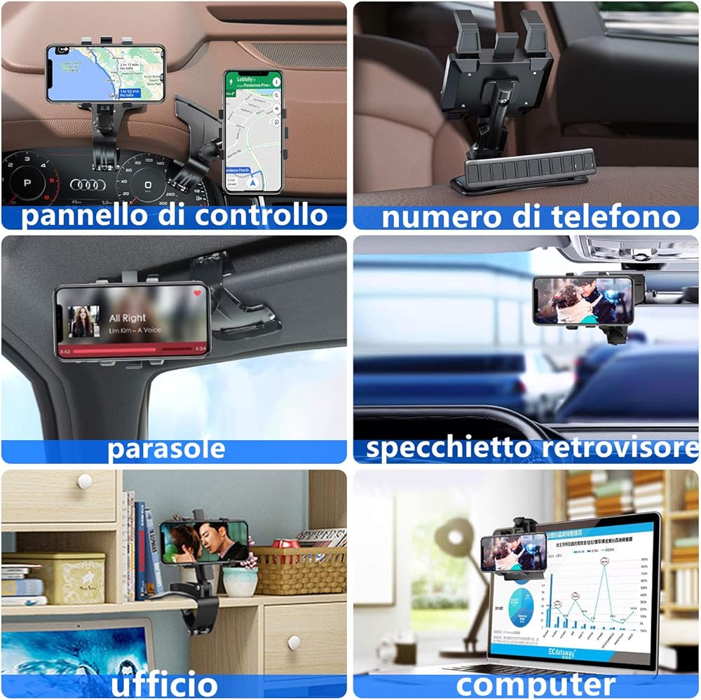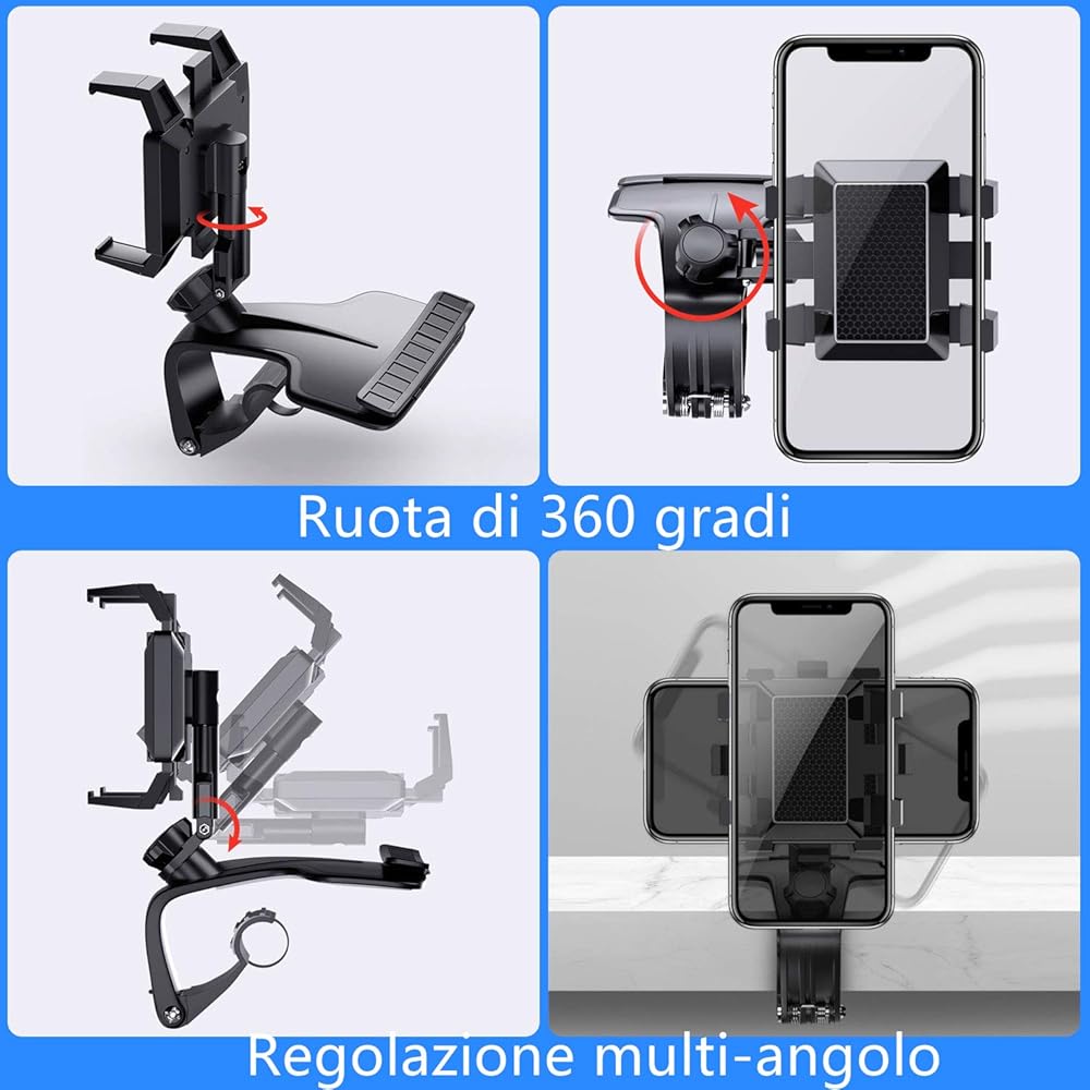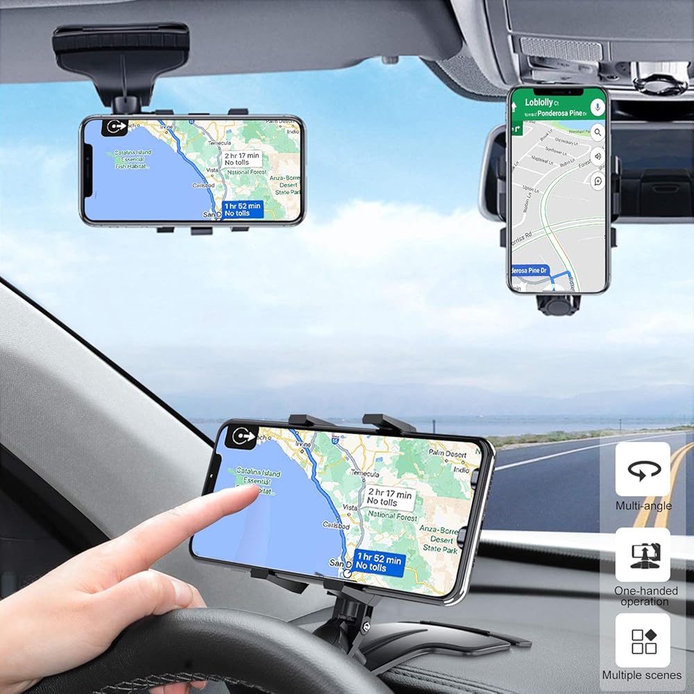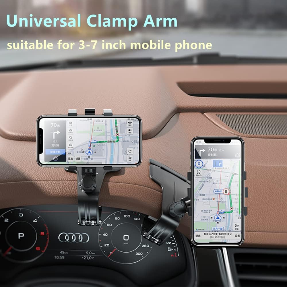 حامل هاتف السيارة DMJWAN، مرآة رؤية خلفية متعددة الوظائف للوحة قيادة السيارة مع مشبك زنبركي قابل للتعديل 360 درجة، مناسب للهواتف الذكية من 3 إلى 7 بوصات (وحدة التحكم المركزية)
