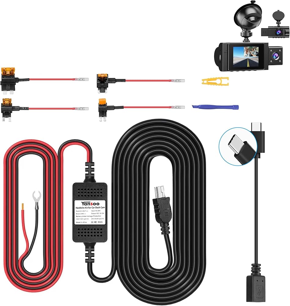 【حزمة ووفر 25 دولارًا】تتضمن هذه الحزمة مجموعة أسلاك صلبة لكاميرا داش USB من النوع C + كاميرا داش كام أمامية وداخلية بدقة FHD 1080P. للحصول على توافق جيد مع كاميرا Dash، نوصي باستخدام مجموعة Yansoo hardwire.