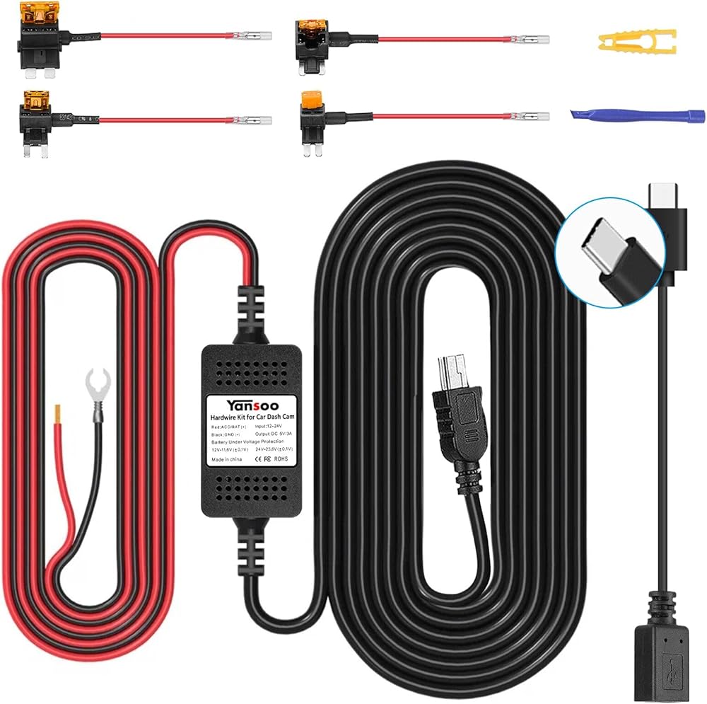 【مجموعة أسلاك صلبة لكاميرا داش تشارينج 24 ساعة】مجموعة أسلاك صلبة لمنفذ USB ميكرو ومنفذ من النوع C لكاميرا داش كام. متوافقة مع كاميرا داش USB أو نوع C بروت.
