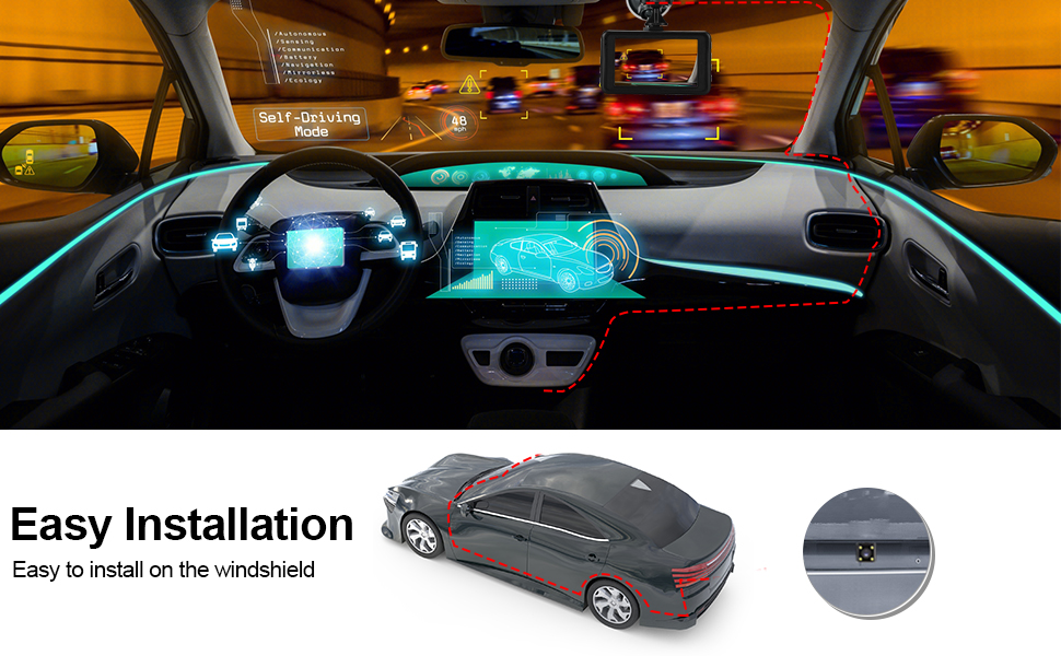 【Easily Install & Operate】 By simply following the instruction manual or product description, it's easy to install and operate our dual dash cam machine. After connected with the power socket, the machine will auto turn on and record when you start the car, and turn off and save the last video when you power off the car. If you want to download the record video, connect the dash cam to a computer by USB cable. Please contact us if you have any questions. We are glad to help.