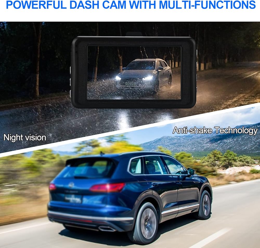 【Dash Cam Front & Rear Camera】 Dash cam not only has a 170 degree wide field of view, but is also equipped with high 1080P resolution, which provides a great driving experience. The front and rear cameras record simultaneously. The dash cam display screen will automatically switch to rear view when reversing. Dash cam front and rear camera help eliminate the blind spots, capture more details and avoid conflicts.