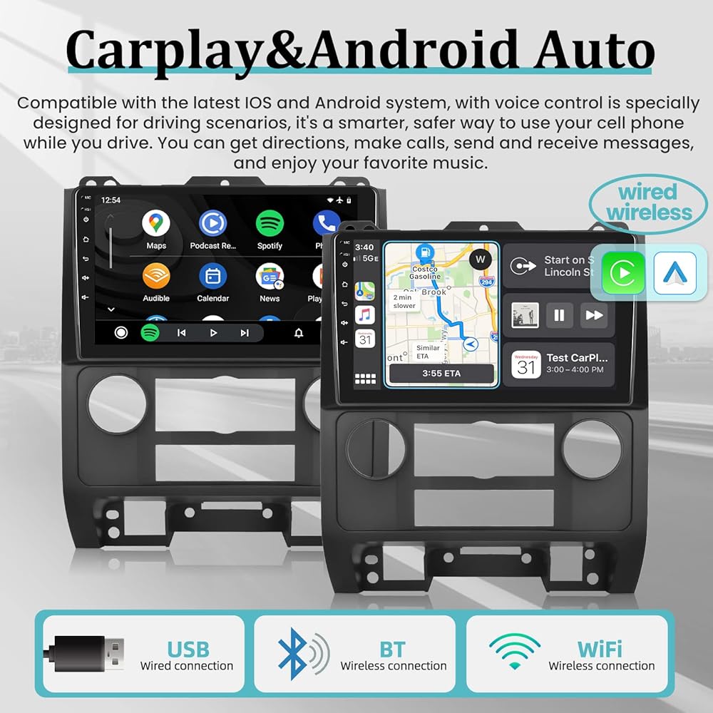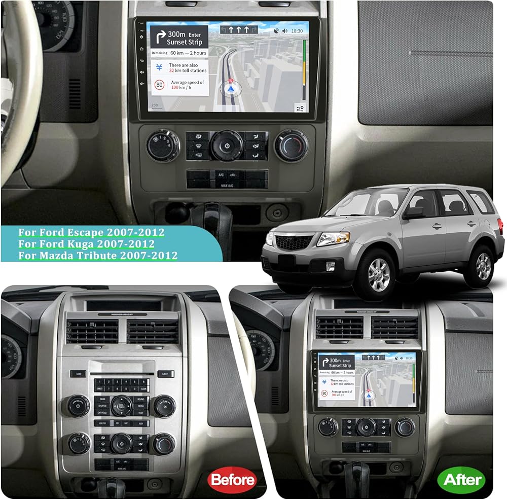 راديو سيارة 2+64G Android 13 لسيارة Ford Escape/Kuga/Mazda Tribute 2007-2012 مع Apple Carplay اللاسلكي وAndroid Auto 9 بوصة 2.5D شاشة تعمل باللمس ستيريو GPS WiFi HiFi + ميكروفون كاميرا احتياطية AHD