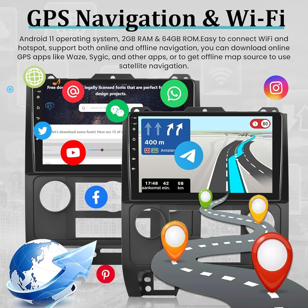 • 【تصفح واي فاي ونظام تحديد المواقع العالمي 】سهولة توصيل WiFi ونقطة الاتصال، ودعم التنقل عبر الإنترنت وغير متصل، يمكنك تنزيل تطبيقات GPS عبر الإنترنت مثل Waze وSygic وتطبيقات أخرى YouTube Netflix.