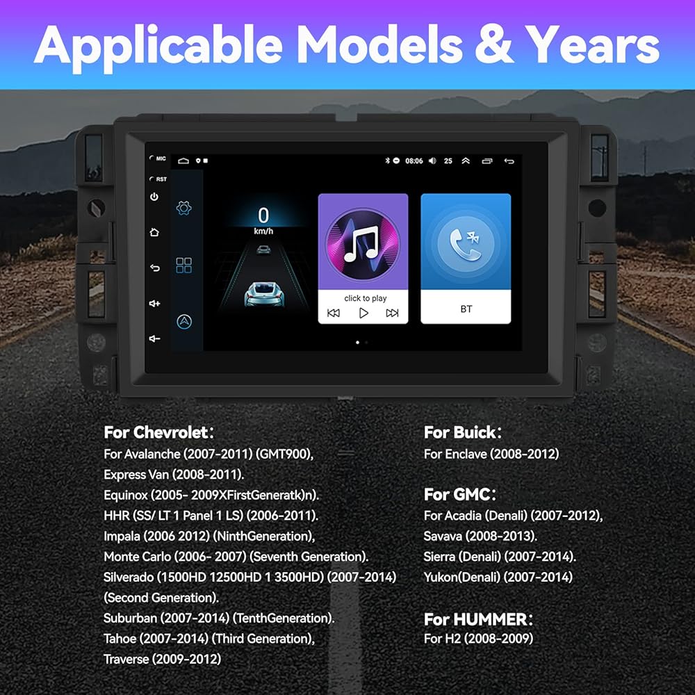 Applicable Car Models For Chevy Silverado 1500 (2007-2012); For Chevy Silverado 2500HD (2007-2012); For Chevy Silverado 3500HD (2007-2012); For Chevrolet Avalanche (2007-2011); For Chevrolet Express Van (2008-2011); For Chevrolet Impala(2006-2012); For GMC Acadia (2007-2012); For GMC Savana (2008-2013); For GMC Sierra (2007-2011); For GMC Yukon (2007-2013)