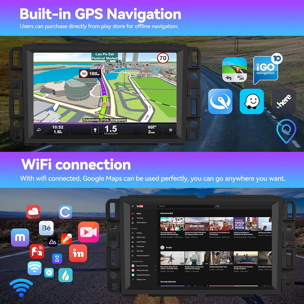 Car Stereo with GPS Navigation and WIFI : Connect to WIFI, and you will find a new world,the most convenient one is the online map.Users can purchase directly from play store for offline navigation. With wifi connected, Google Maps can be used perfectly, you can go anywhere you want and never get lost an
