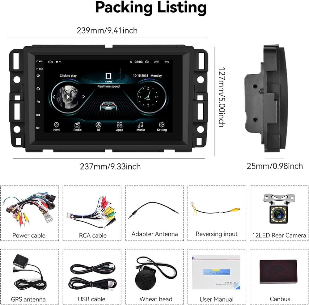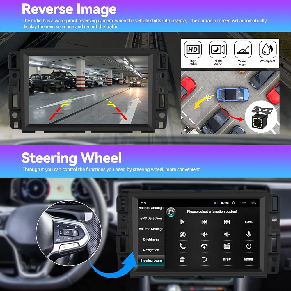 ستيريو سيارة أندرويد 11 مزدوج الدين لسيارة جي إم سي سييرا تشيفي سيلفرادو يوكون شيفروليه بويك مع واي فاي ونظام تحديد المواقع العالمي للملاحة، راديو سيارة بشاشة تعمل باللمس 7 بوصة مع وصلة مرآة، بلوتوث FM/RDS، SWC+كاميرا احتياطية