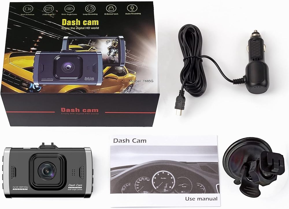 كاميرا Dash Cam، كاميرا لوحة قيادة السيارة Dyzeryk شاشة 3.0 بوصة، دقة Full HD 1080P، زاوية واسعة 170 درجة، كاميرا فيديو مسجلة على لوحة القيادة، كاميرا سيارة مع مستشعر G، تسجيل حلقي، رؤية ليلية، WDR (أسود)