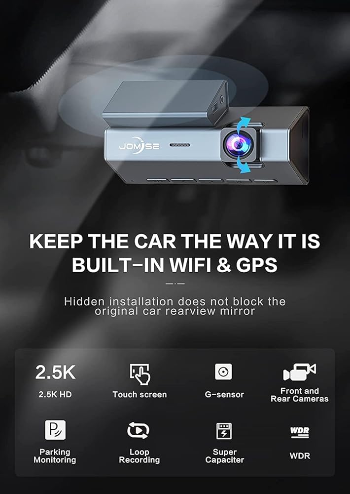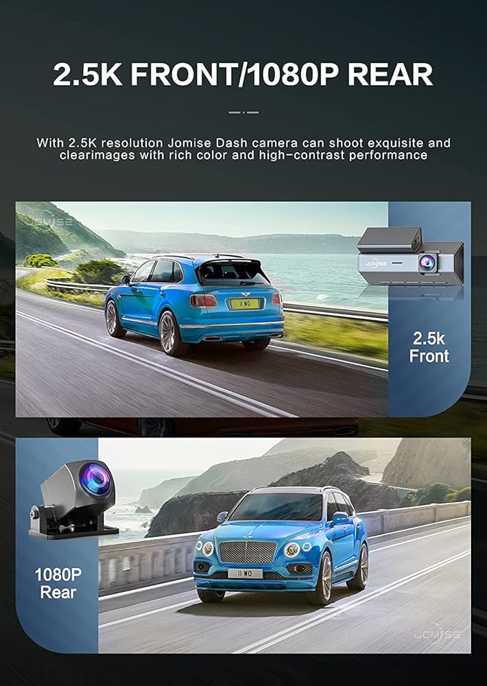 جوميز كاميرا لوحة القيادة S30 2.5K، شاشة لمس 3 انش امامية وخلفية للسيارات، واي فاي مدمج، مسجل كاميرا لوحة القيادة بزاوية واسعة 170 درجة مع مستشعر ستارفيس، شاشة وقوف السيارات 24 ساعة