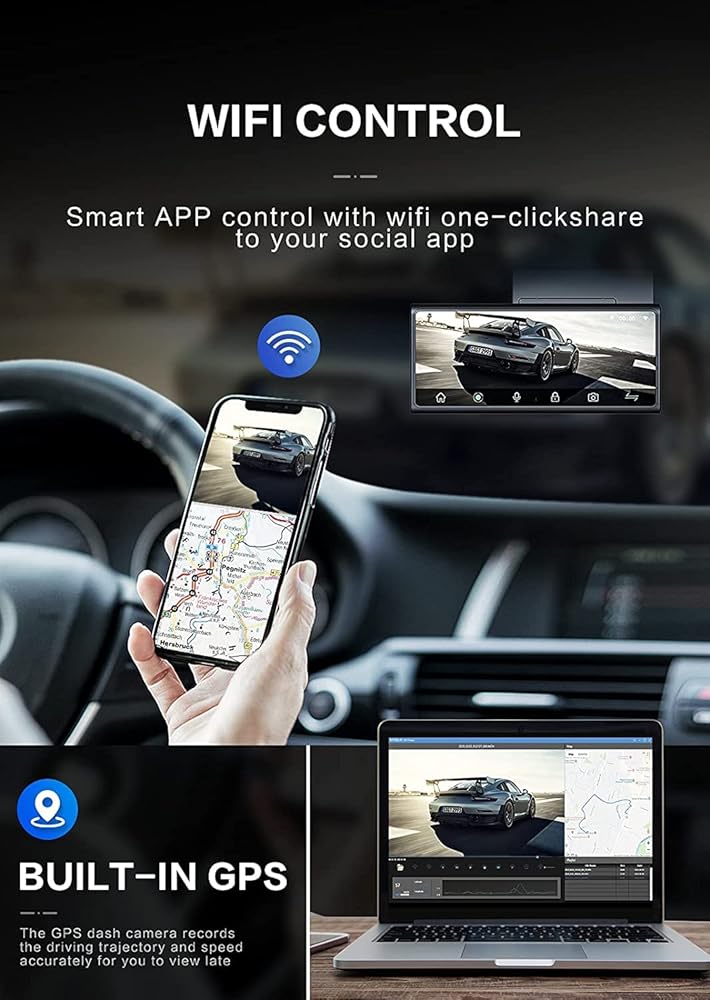 [ كاميرا سيارة واي فاي مدمجة] تحتوي كاميرا السيارة الأمامية 2.5 كيه على واي فاي مدمج مع اتصال سهل بتطبيق هاتفك الذكي. مع تطبيق "Road cam" الذي يمكن تنزيله على جوجل بلاي، من المريح جدًا تشغيل المعاينة المباشرة والتشغيل وإدارة الجهاز على هاتفك الذكي. يرجى التأكد من أنه لا يمكن توصيله إلا في نطاق معين (10 قدم ~ 16 قدم). إذا كنت ترغب في مشاركة الفيديو مع العائلة أو الأصدقاء، يمكنك تنزيل الفيديو على هاتفك، ثم إرساله أو مشاركته.