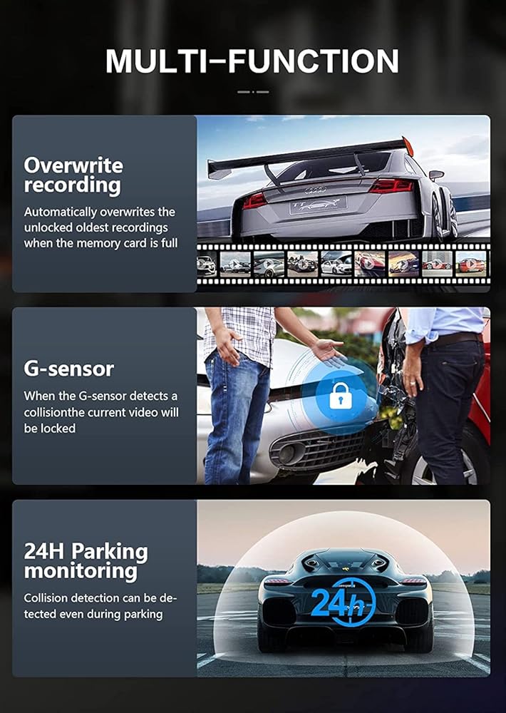 [أكثر من 20 وظيفة وحذر للحرارة] يوفر S30 أكثر من 20 وظيفة، مثل شاشة اللمس/التسجيل الحلقي/مستشعر التسارع/شاشة وقوف السيارات على مدار 24 ساعة/واي فاي/التحكم في التطبيق، إلخ. يجب أن تكون كاميرات داش كام للسيارات المزودة بشريحة هيس مزودة بغلاف معدني لتحقيق تبديد حرارة كافٍ لضمان عمر خدمة المنتج. على الرغم من أنه سيشعر بالحرارة الواضحة عند لمسه، إلا أنه لا يزال بإمكانه ضمان عدم تعطل الجهاز وإعادة تشغيله عند 160 فهرنهايت..