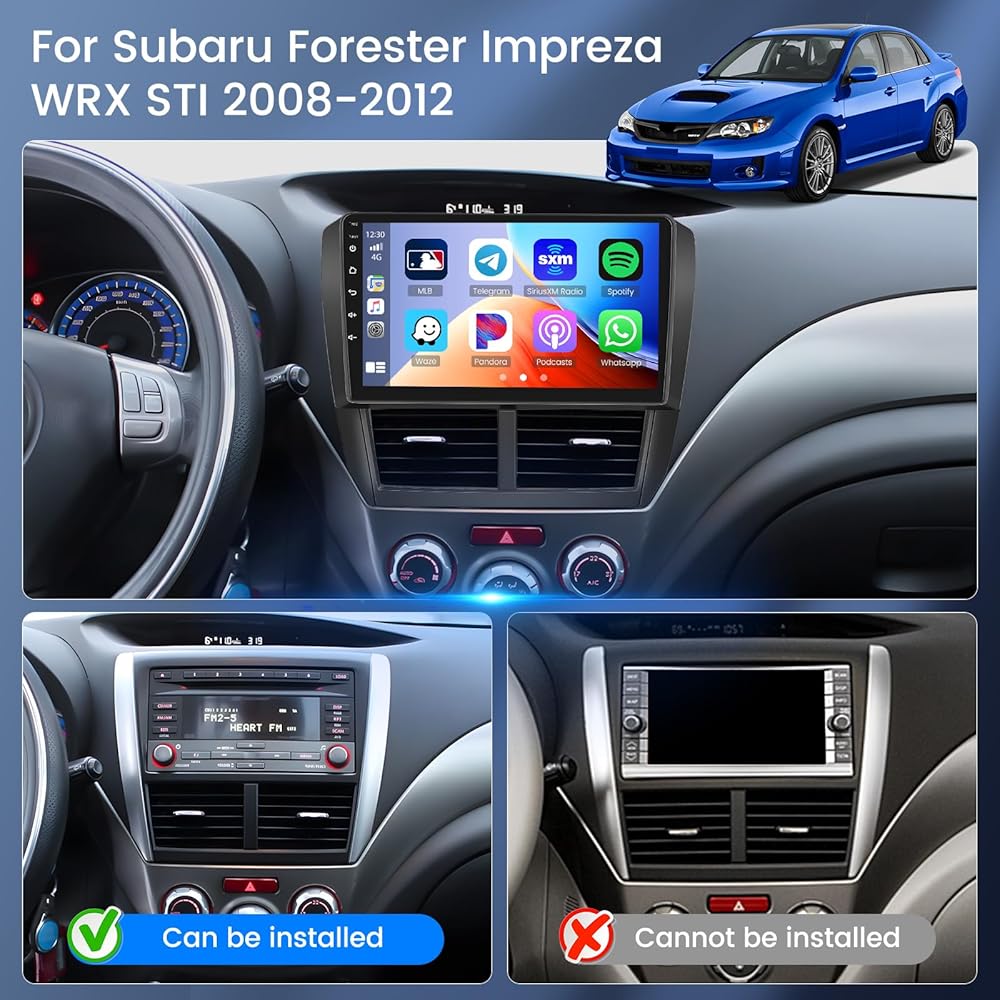 راديو سيارة لـ Subaru Forester Impreza WRX STI 2008-2012: [2G+64G] ستيريو سيارة 9 بوصة مع Carplay Android Auto و Radio Bluetooth الشاشة اللمسات مع Forester مع GPS Link WiFi SWC FM RDS