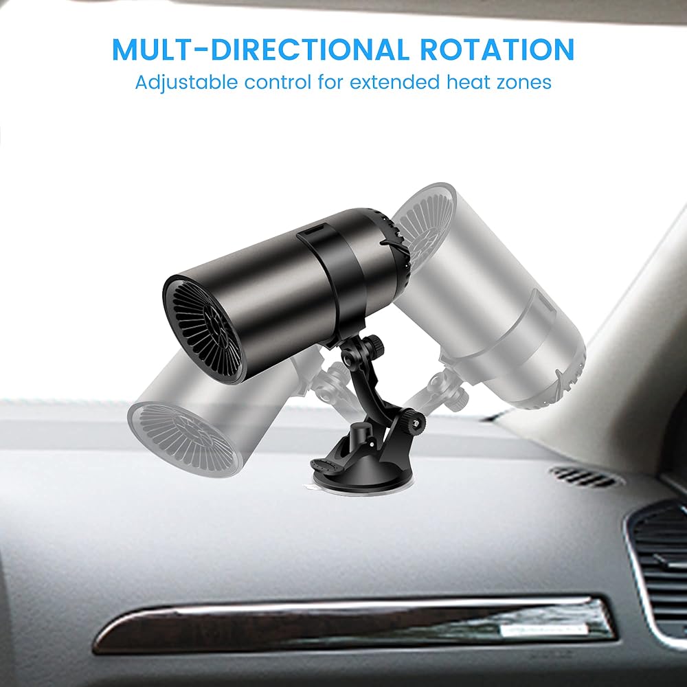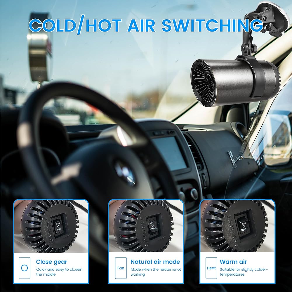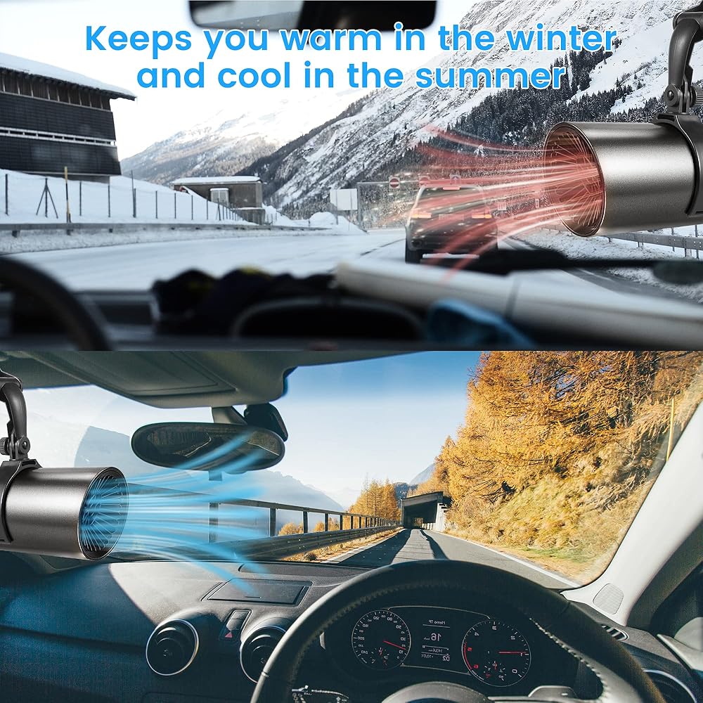 يمكن لسخان السيارة القوي تسخين الهواء بسرعة في غضون دقيقة واحدة، وتدفئة الشتاء. مع مفتاح ساخن وبارد، وضع الرياح القابل للتعديل، يمكن استخدامه كرياح باردة ورياح دافئة. إنه مثالي لإزالة الجليد أو إزالة رذاذ النوافذ وزجاج الرياح، فهو يسخن الهواء بسرعة دون الحاجة إلى الانتظار حتى يسخن المحرك