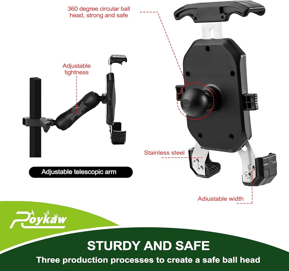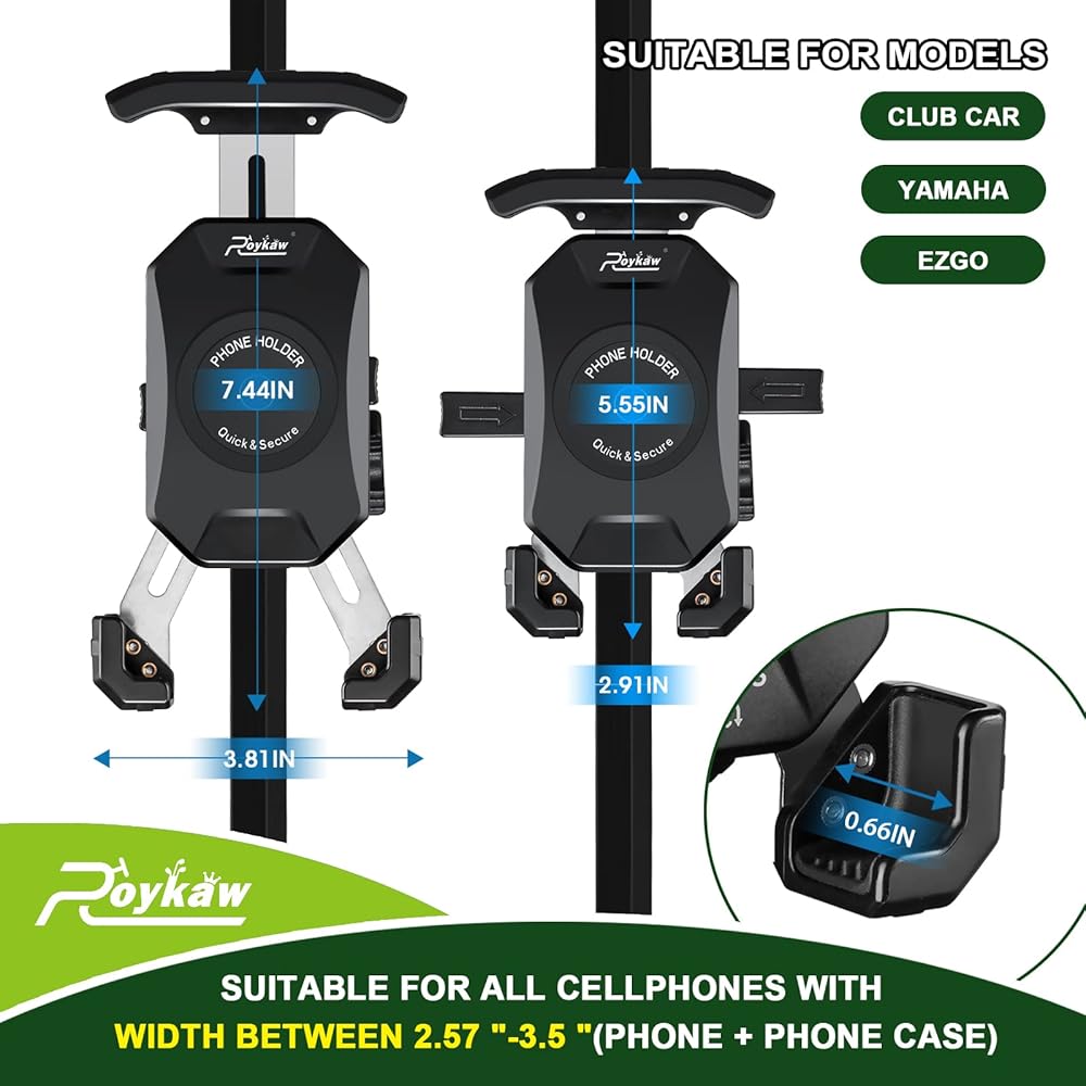 مصمم خصيصًا: يناسب حامل الهاتف هذا معظم موديلات عربة الجولف. مثل EZGO/Club Car/YAMAHA/ICON/Advanced EV إلخ. ملحوظة: إنه فقط للإطار المربع. (يناسب الإطار المربعي 1.9 سم، 1.4 سم، 1.2 سم، 3.8 سم)
